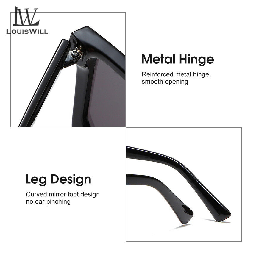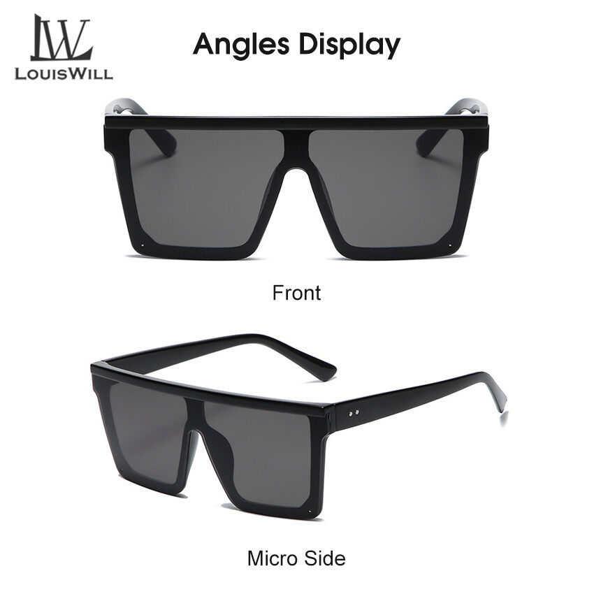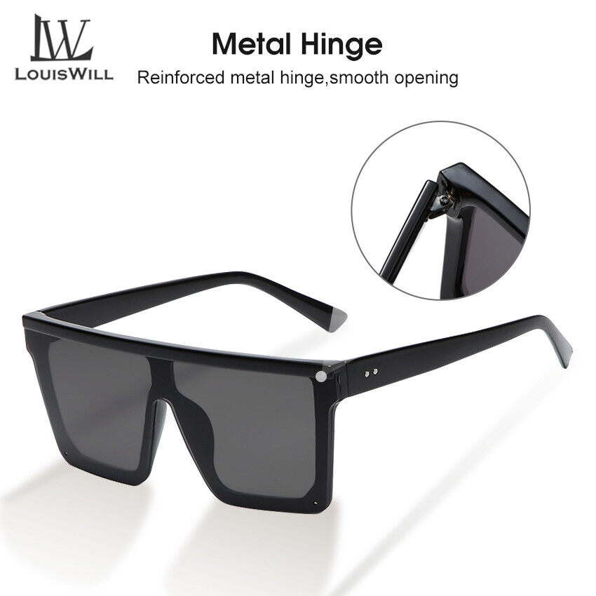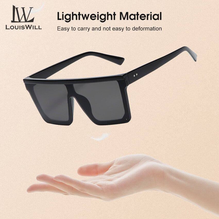 LouisWill Sunglasses Fashion Luxury Brand Square Sunglasses Women Vintage Oversize Sun Glasses Female Big Frame Shades Oversized Square Sunglasses Lady Uv400 Flat Top Shield Sunglasses