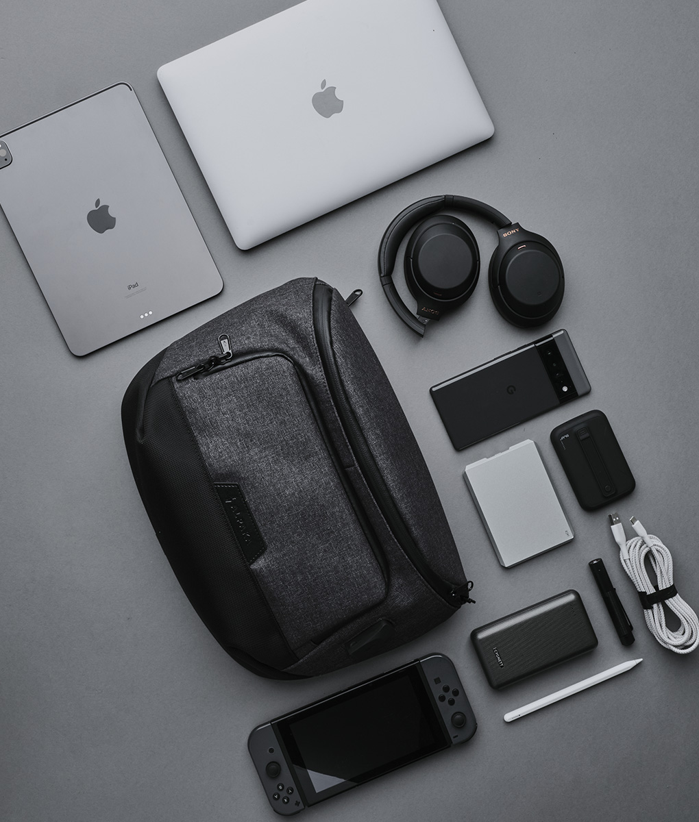 • The rear compartment #1 is designed to carry your tablet (fits up to a 12.9" tablet) and other essentials