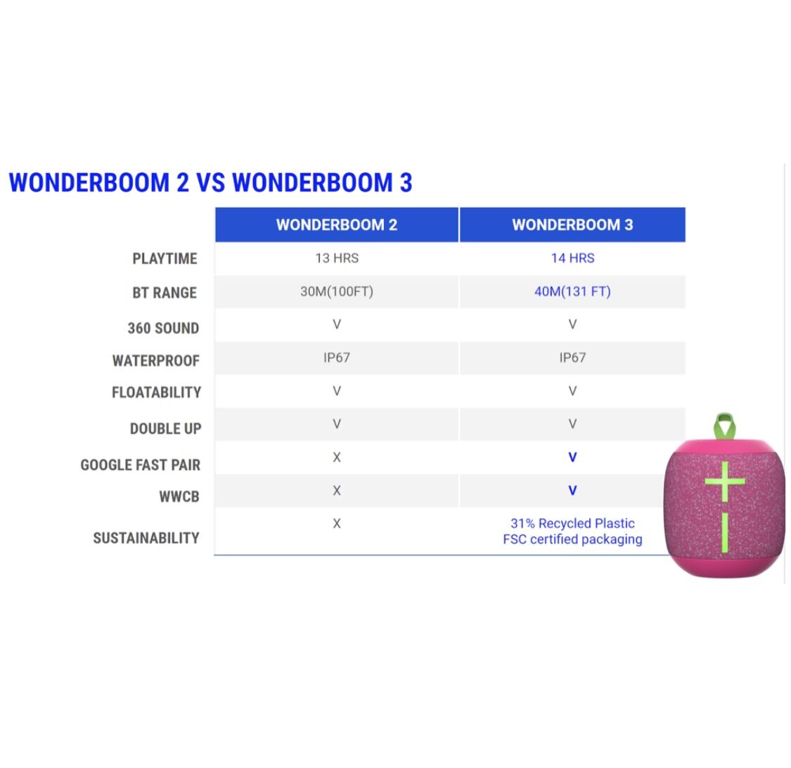 Bigger, longer, more efficient: That bigger 360° sound in a petite package - the UE WONDERBOOM 3 mini party speaker features boosted sound for 14 hours of audio and music playtime