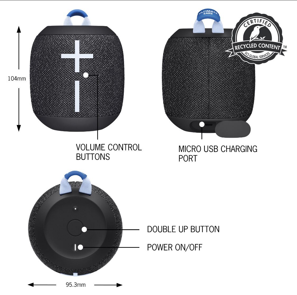 Minimum 31% post-consumer recycled plastic. WONDERBOOM 3 is made from recycled plastic sourced from end-of-life electronics.