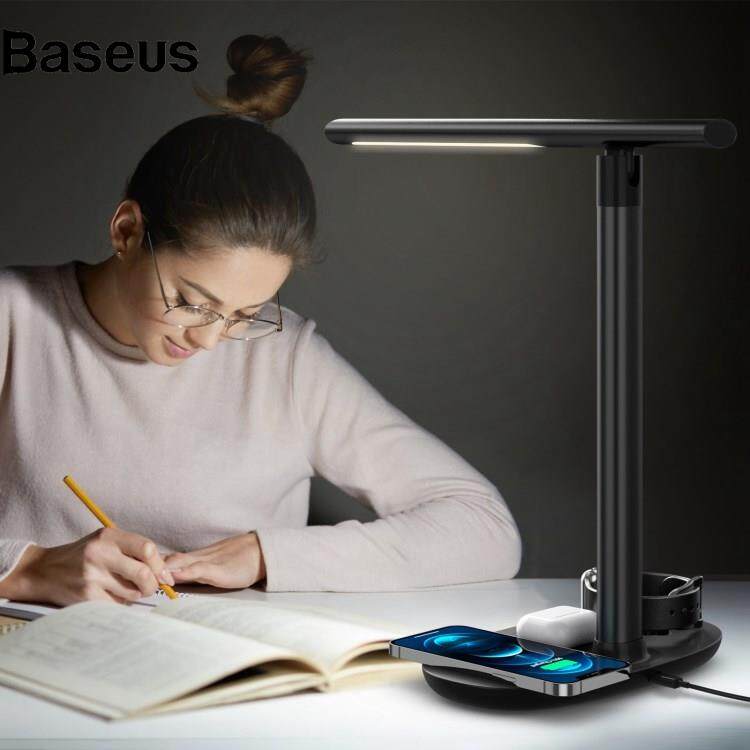 Baseus B-15 4-in-1 Phone Watch Earphone Wireless Charger Desk Lamp 15W Phone Wireless Charging Dock LED Table Light