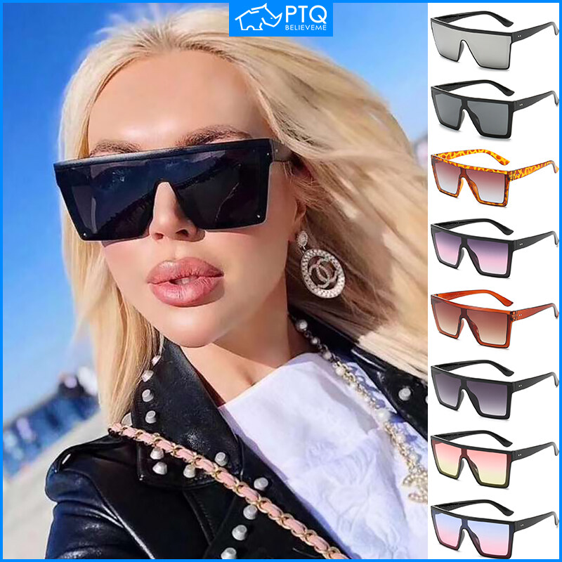 PTQ New Comfortable Sunglasses Fashion Trend Sunglasses For Women For Men Oversized Frame Square Sun Glasses Multicolor Ocean Lens Glasses