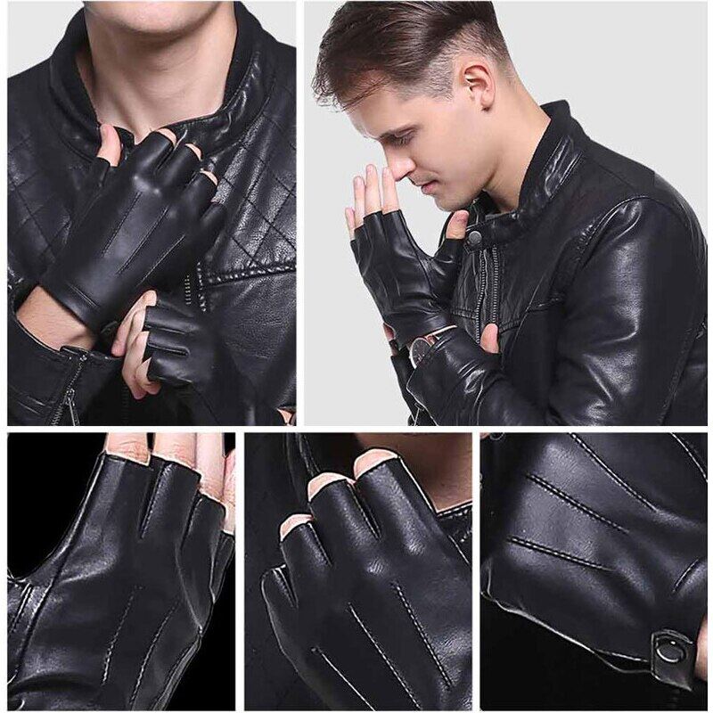 Half Finger Men Gloves PU Leather Motor Punk Black Outdoor Cycling Gloves