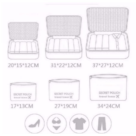 6 in 1 Travel Bag Organizer Set Pouch Luggage Makeup Bag Storage Clothing Holder Sorting Bag