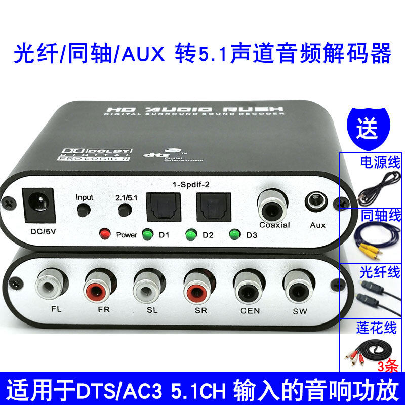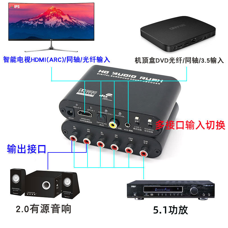 DVD TV Hdmiarc/Optical Fiber/Coaxial/Aux to 5.1 Channel AC3 Dolby DTS Audio Decoder