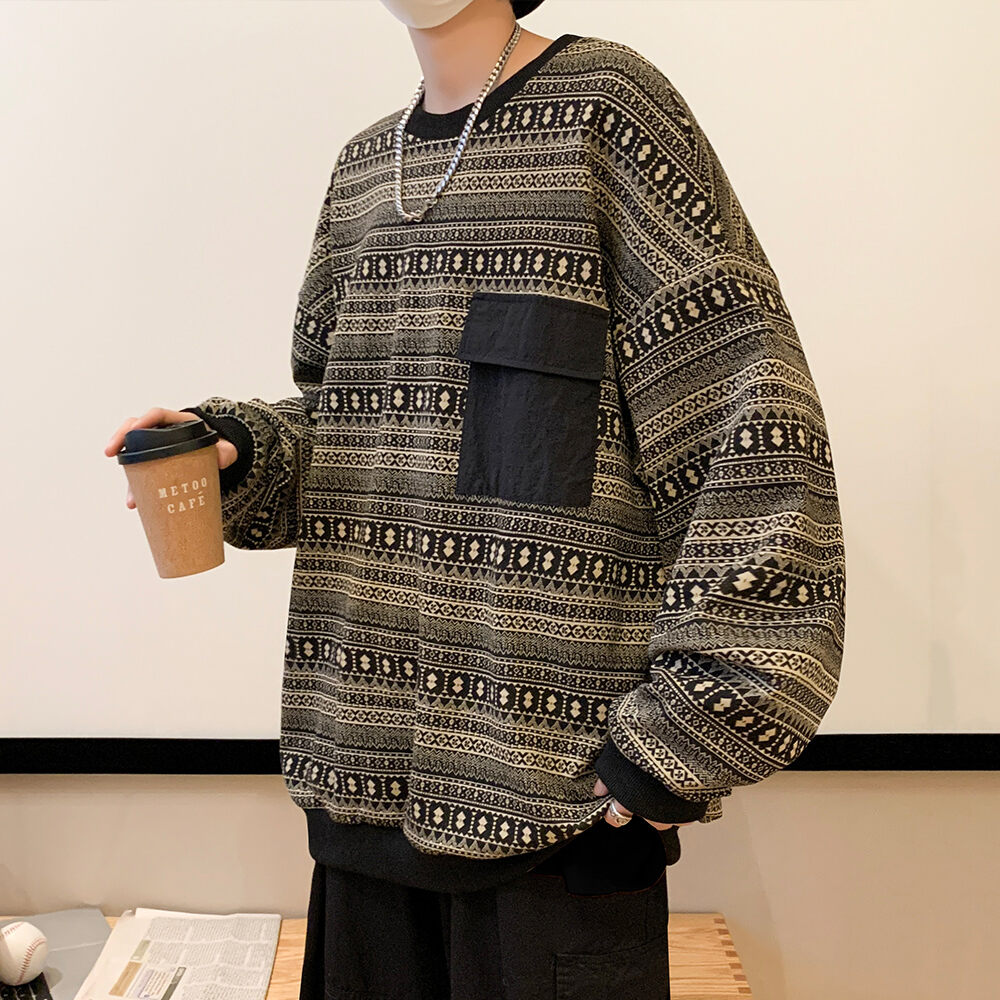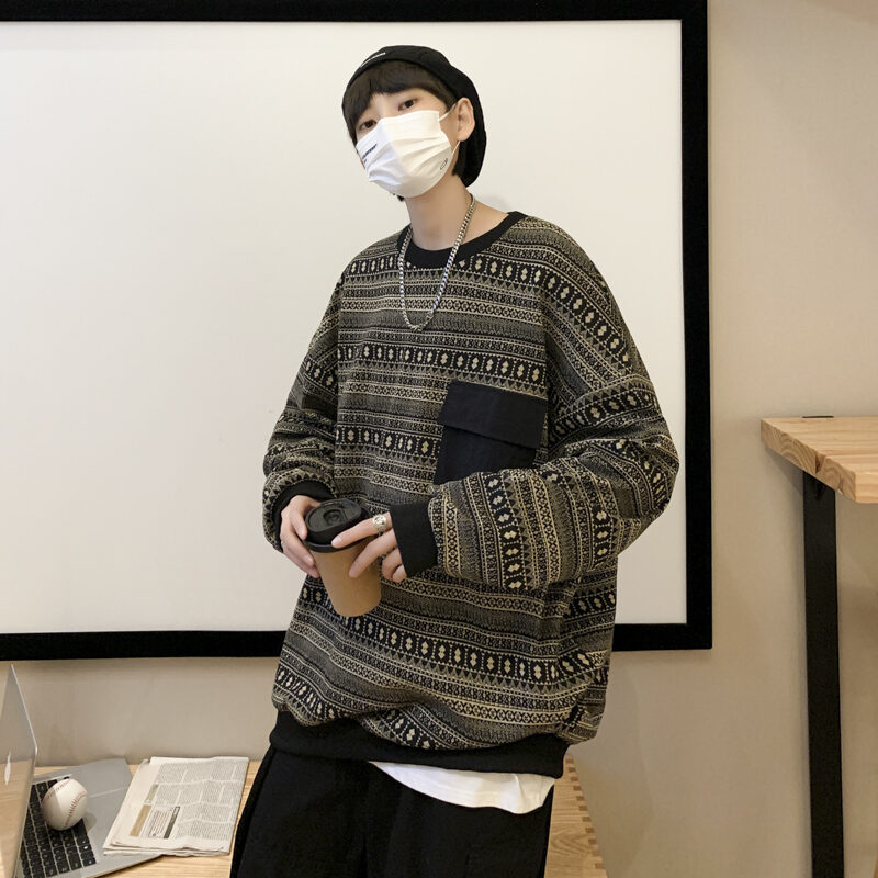 Retro Sweater for Boys Oversize Hong Kong Style Loose Fashion Brand High Street Top Design Sense Spring and Autumn T-shirt Long Sleeve