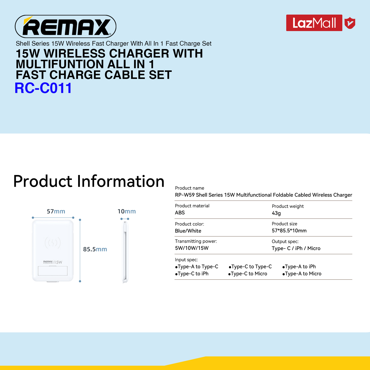 [Remax Energy] RP-W59 60W Fast Charging Cables + 15W Wireless Charger Type-C Mobile Phone Data Cable USB Charger Set Storage Box