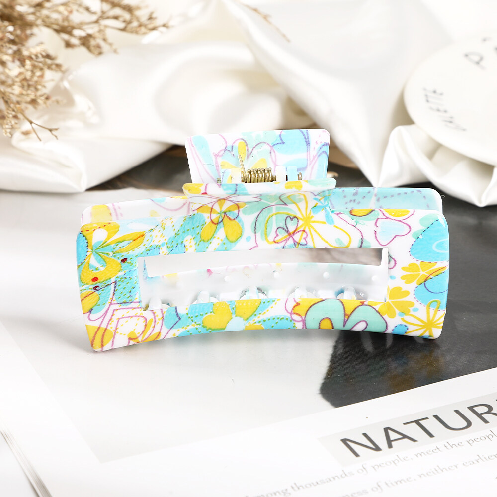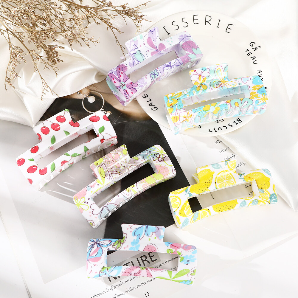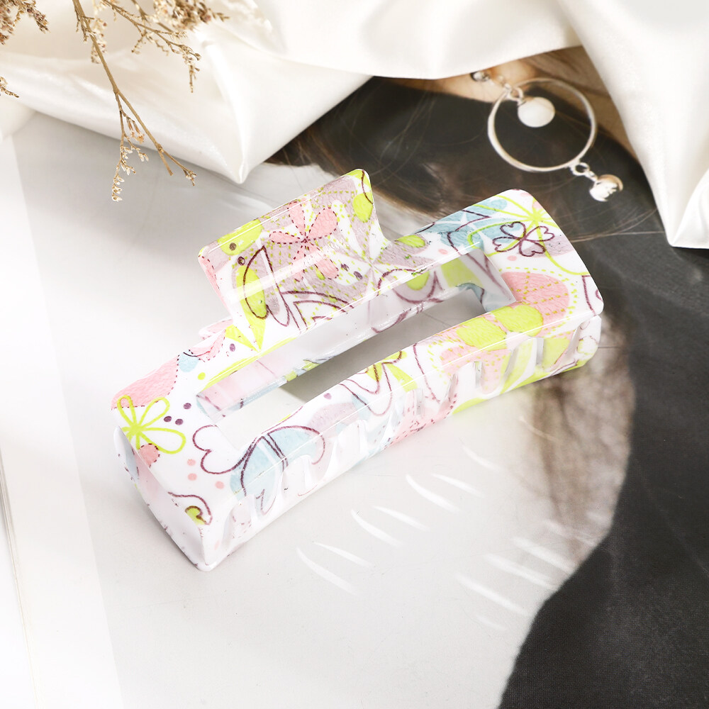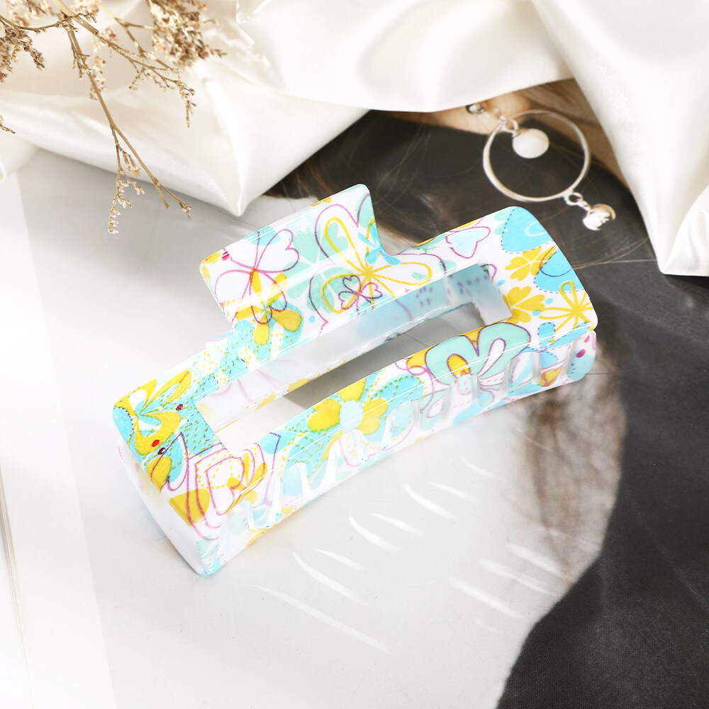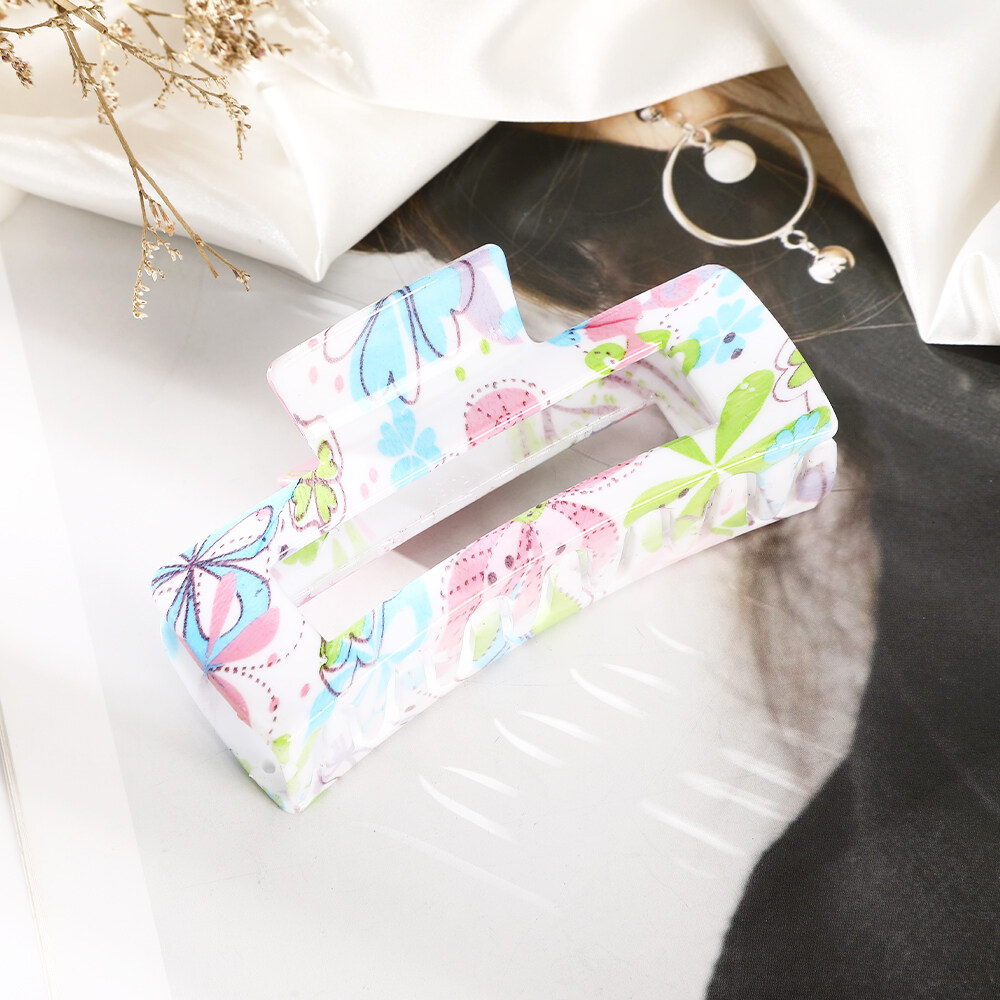 1pc Korean New Hair Clip10.5cm Printed Plastic Rectangular Grab Clip Hairpin Fashion Fresh Ladies Shark Clip Headwear