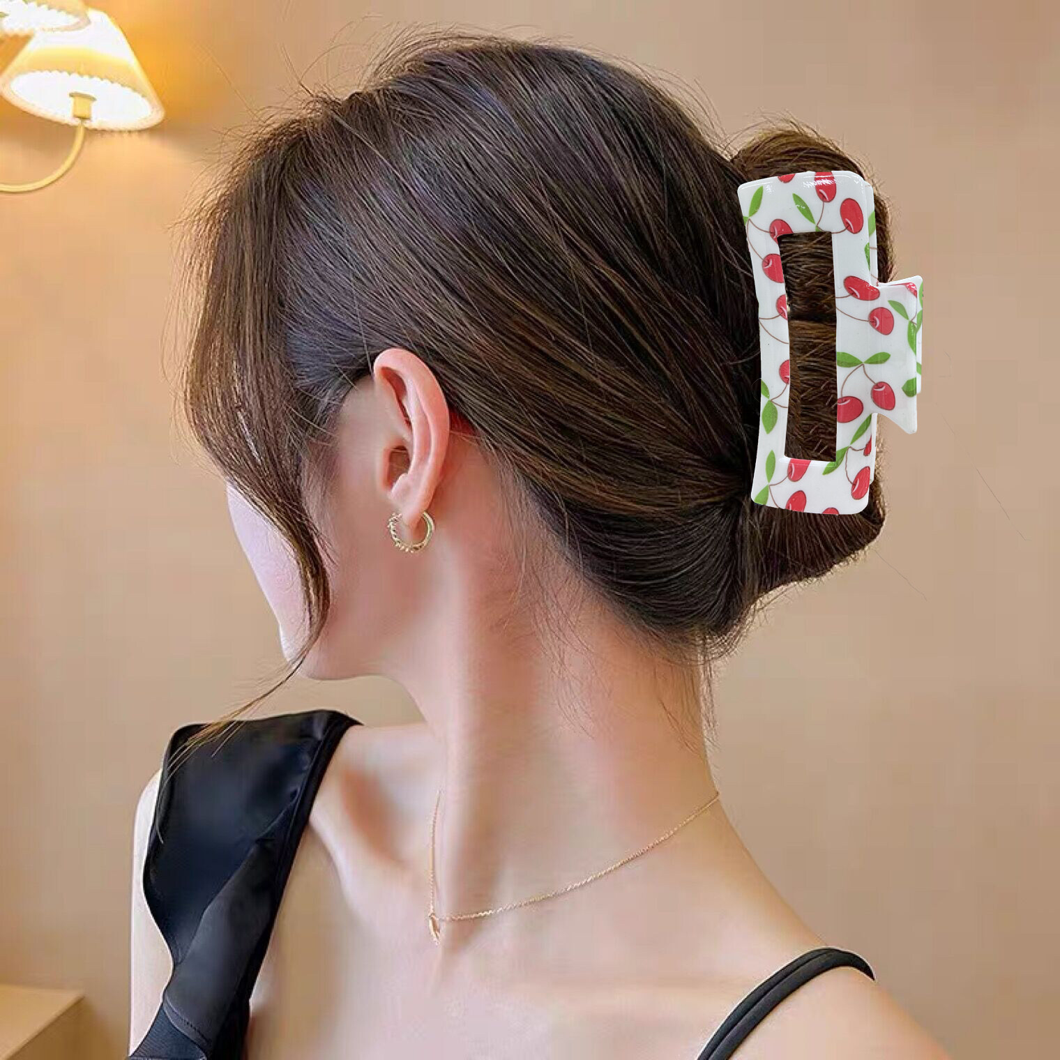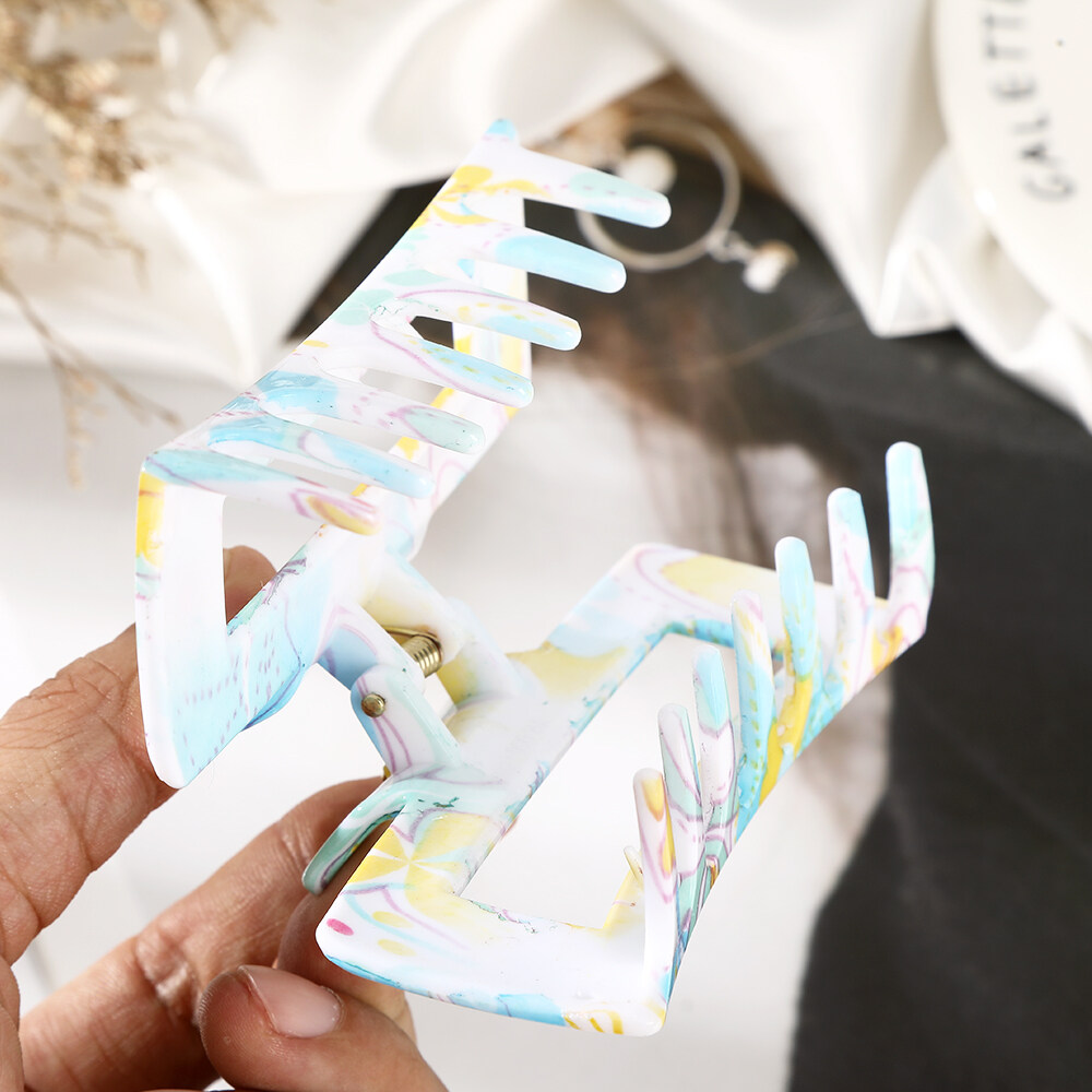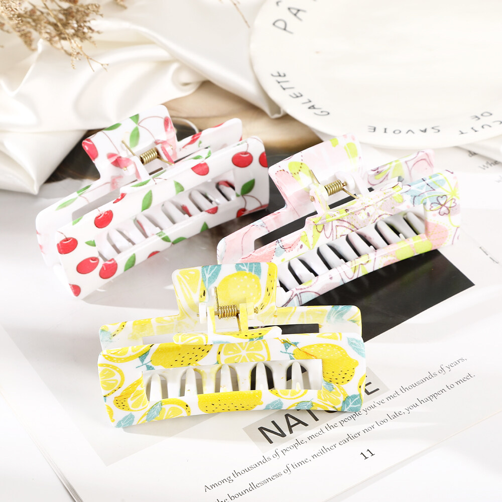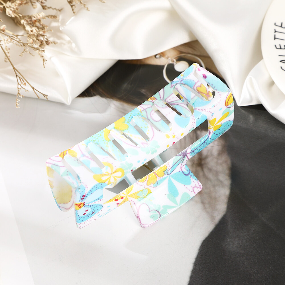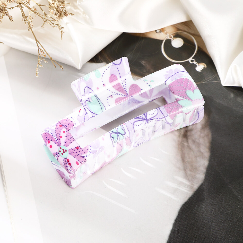 1pc Korean New Hair Clip10.5cm Printed Plastic Rectangular Grab Clip Hairpin Fashion Fresh Ladies Shark Clip Headwear