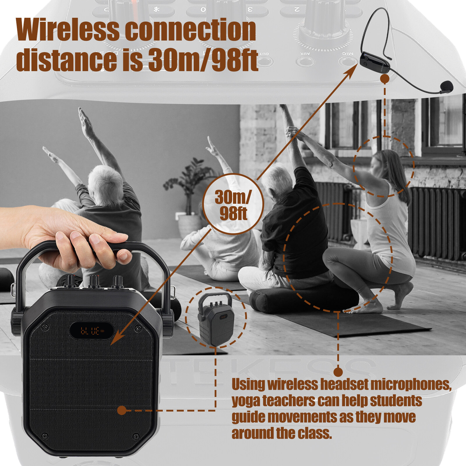 A voice amplifier supports connecting two wireless microphones at the same time (package includes 1),you can also connect to a wired microphone (not included).
