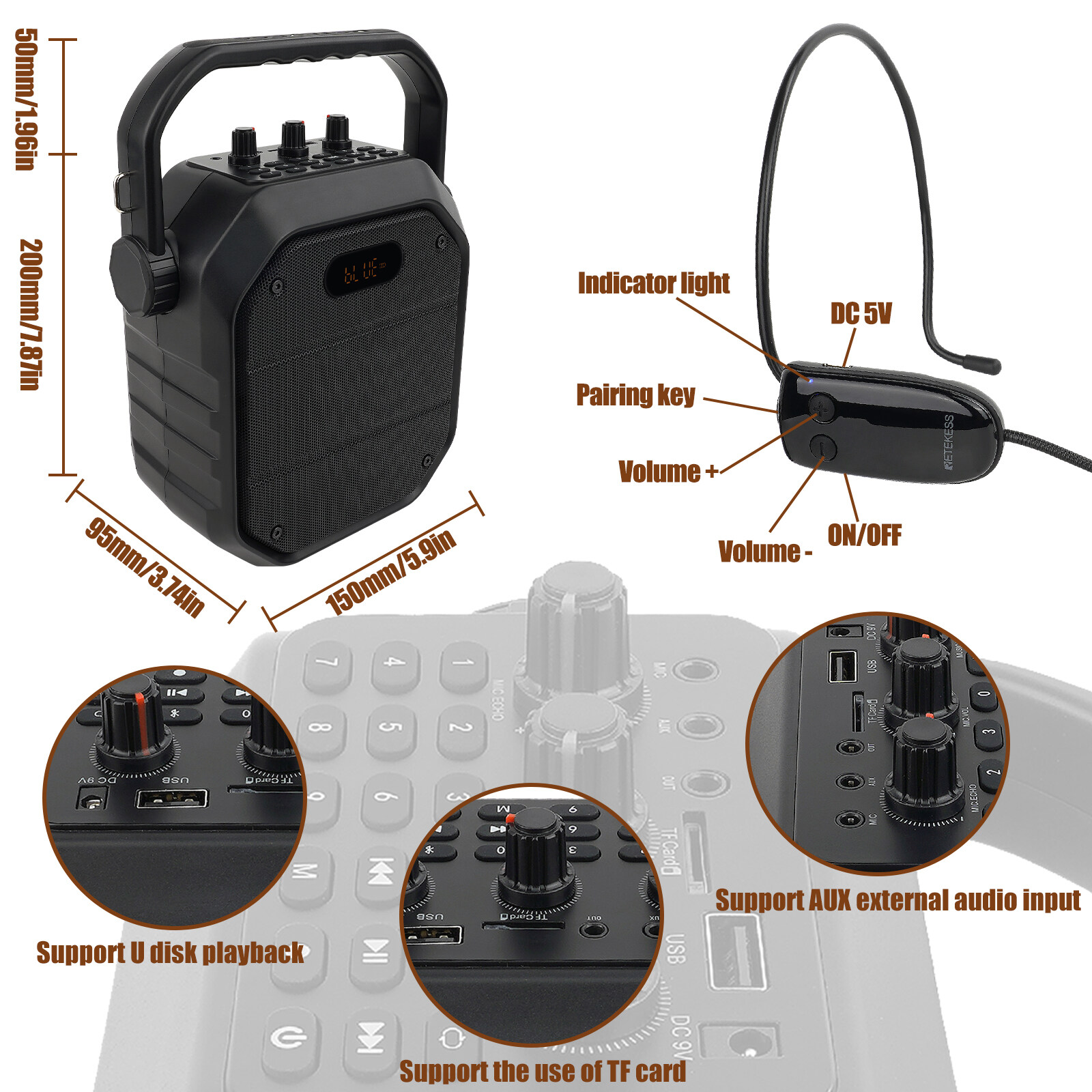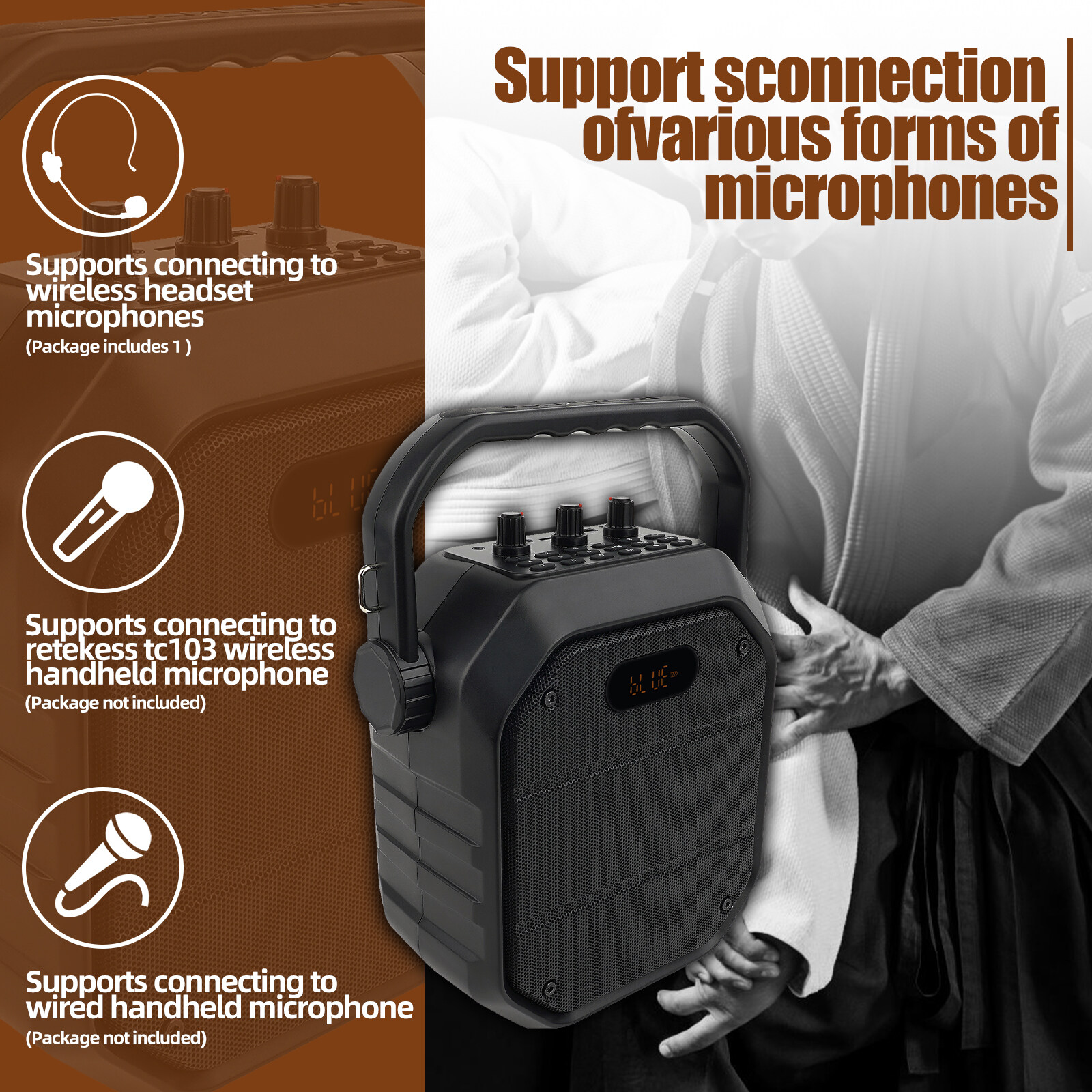 Retekess TC102 Portable PA System,Wireless Bluetooth Speaker,Voice Amplifier Rechargeable,with FM Radio and MP3 Player for Coaching,Teaching, Conference