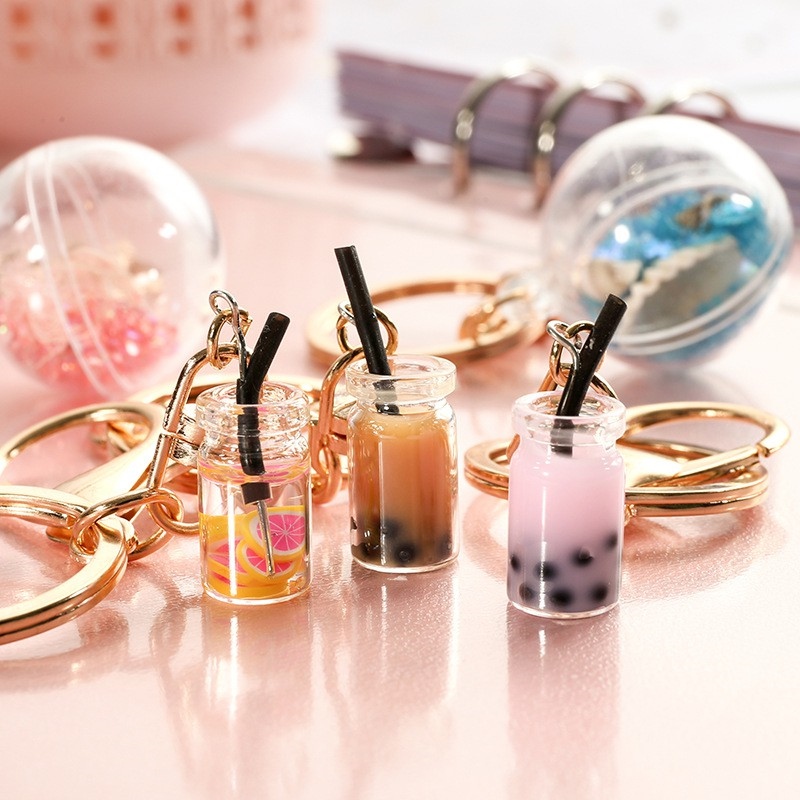 ✐▨┇ small fresh bag pendant student female cute girl heart creative tea mini circle key chain