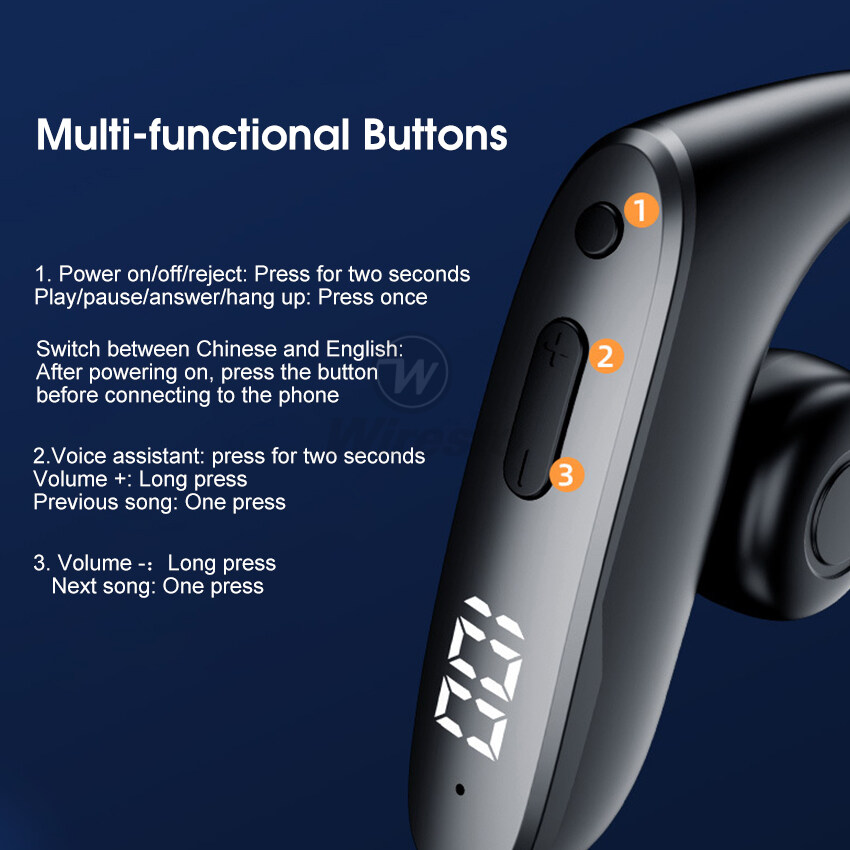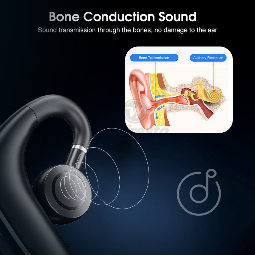 Wiresto Wireless Bluetooth 5.2 Earphone Bone Conduction Single Ear Headphones Open Ear Headphone Non-In-Ear Earbuds HD Stereo Headset Sweat-proof Waterproof Earphones for Sport Business Daily
