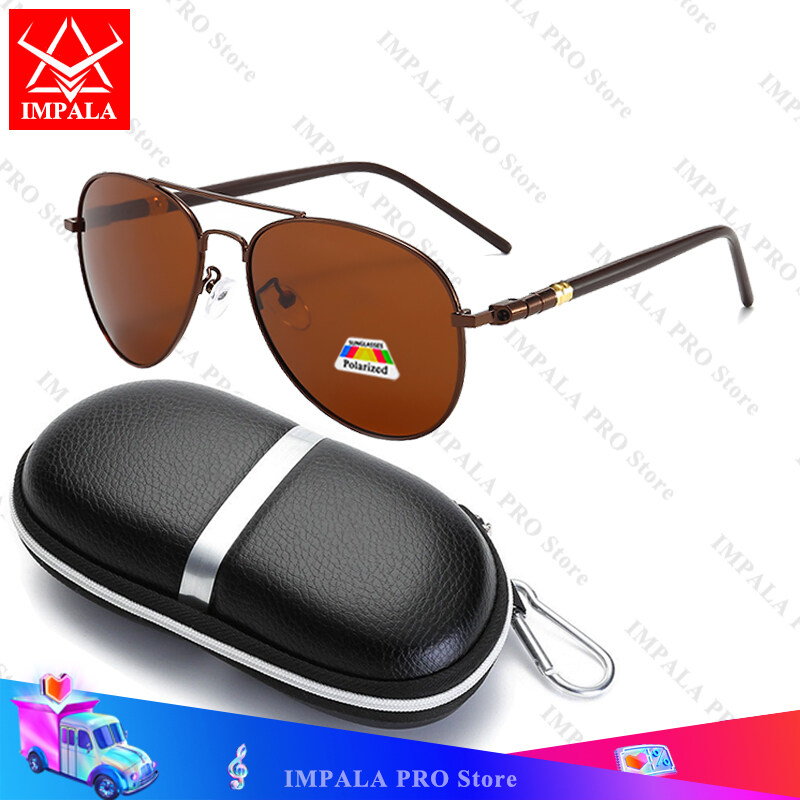 IMPALA PG1836L Retro Polarized Sunglasses for Men Driving Fishing Anti Glare Sun Glasses Metal Frame Aviator Style Outdoor Sports Men' Sunglasses