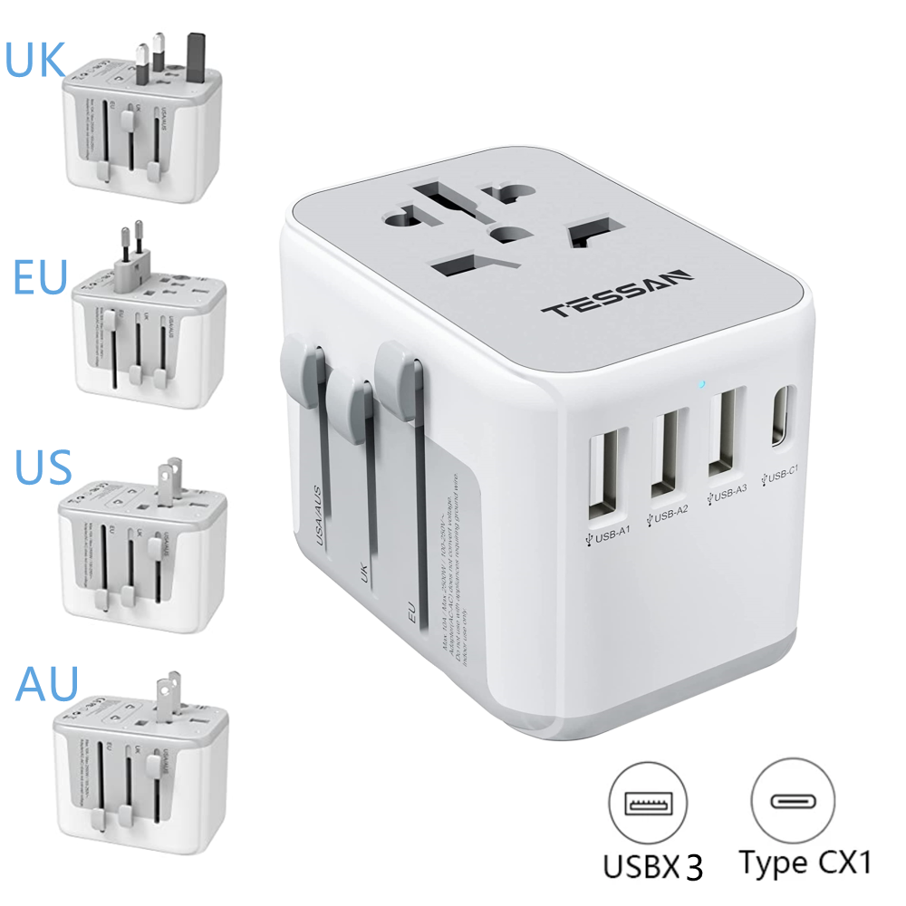 USB C Universal Plug Adapter: The 3 USB A ports can charge up to 2.4A, and the USB C port can charge up to 3A, ideal for cell phone, tablet, power bank, laptop, camera, ect. All the USB ports output: 5V/3.4A, 17W max