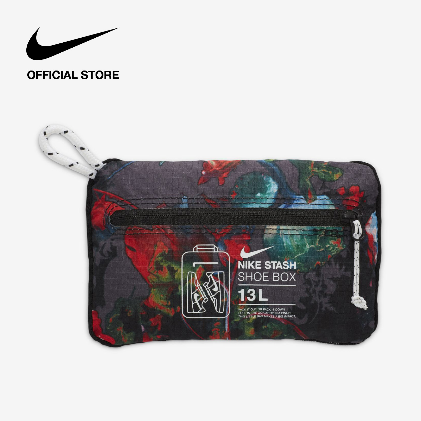 Store your shoes on the fly with the Nike Shoe Bag. It packs down small into its own zip pocket when not in use, making it virtually invisible until you need it. Perfect for traveling 5 miles or 500, this lightweight bag is an essential for sneakerheads.