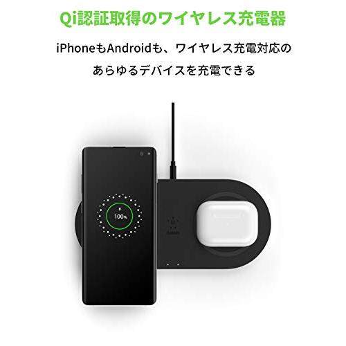 Belkin Wireless Charger Two Charging Pads Simultaneously 10W x 2 Qi Certified iPhone 12 Pro / 12 / SE / 11 / XR / AirPods / Android Smartphone Compatible BOOST ↑ CHARGE Black WIZ002dqBK-A
