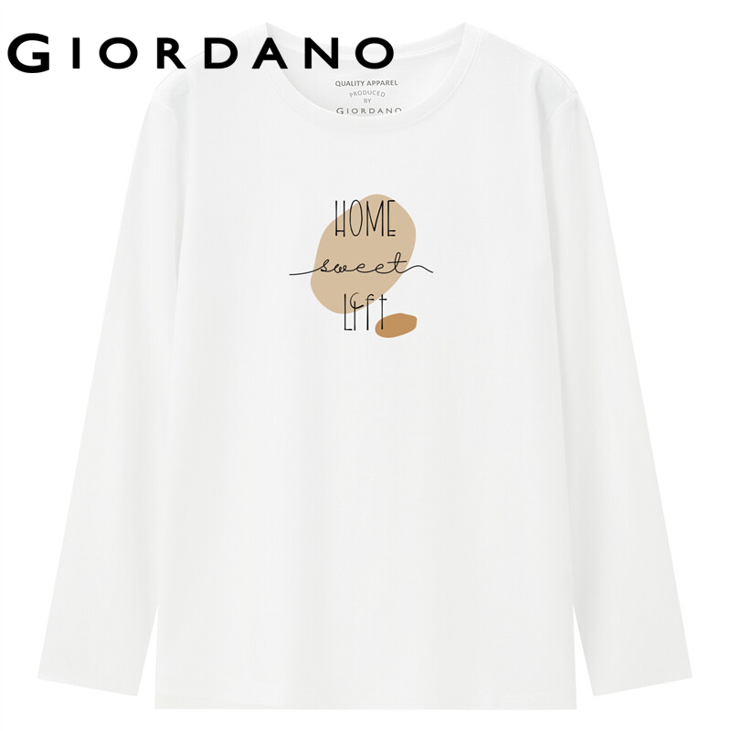 GIORDANO Women Huaxiansheng Series T-Shirts Long Sleeve 100% Cotton Simple Tee Crewneck Print Comfy Casual T-Shirts 99392189