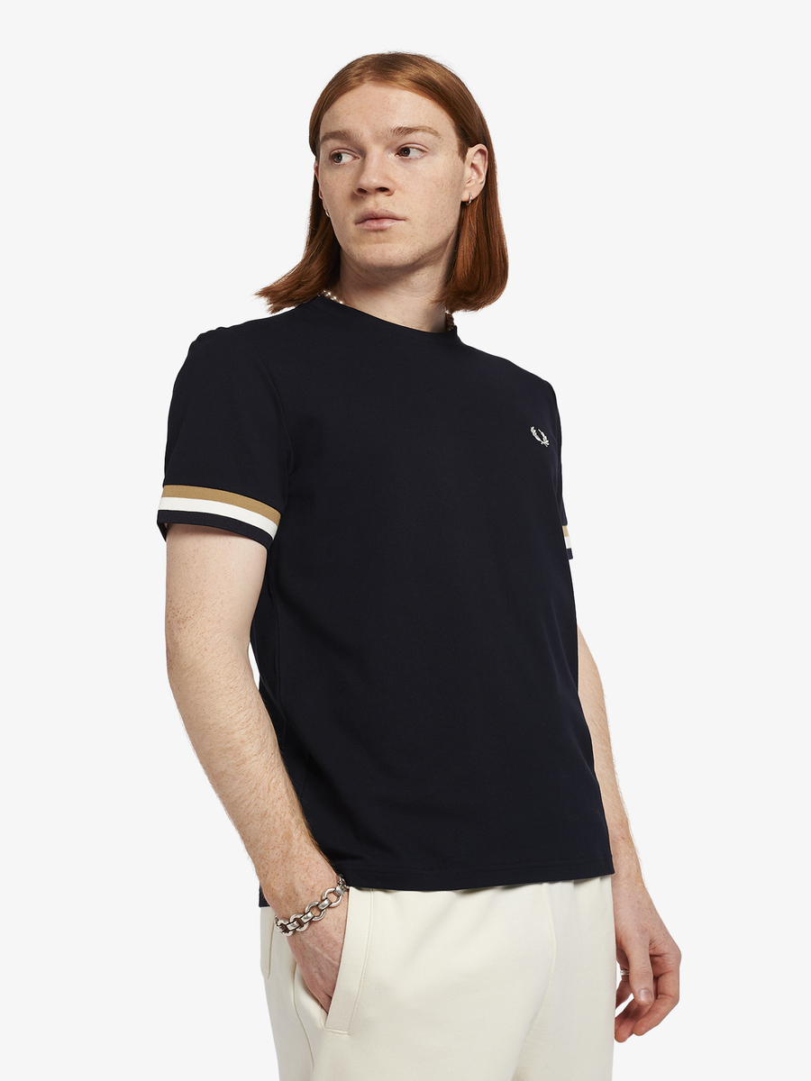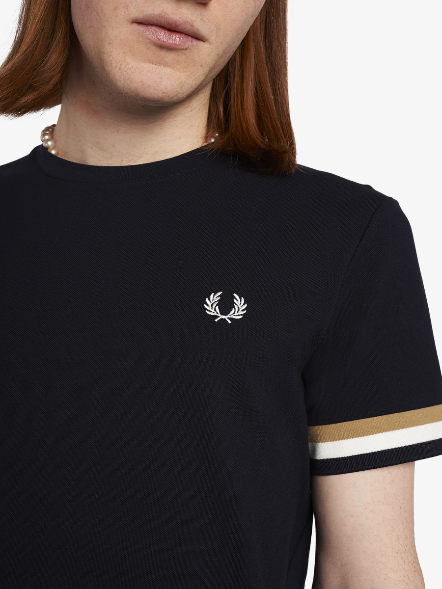 A crew-neck t-shirt featuring our signature Laurel Wreath embroidery and bold tipped cuffs.
