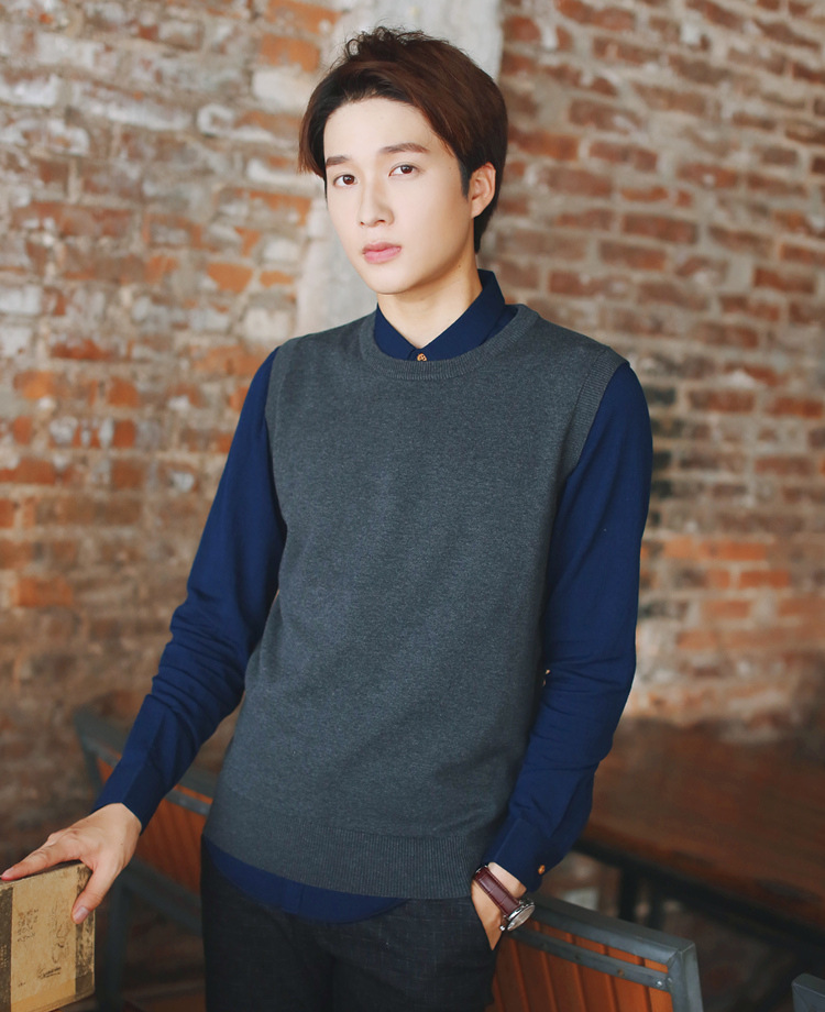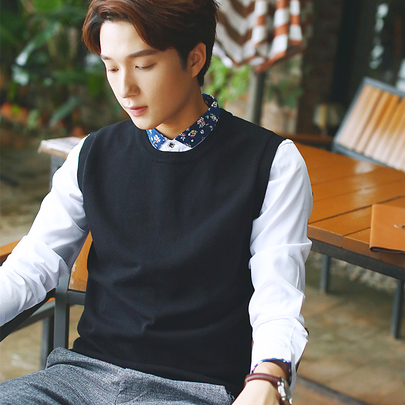 Round Neck Sleeveless Sweaters Men Stripe Good Quality Young Pullover Vest Solid Color Male Knitting Sweater Vests