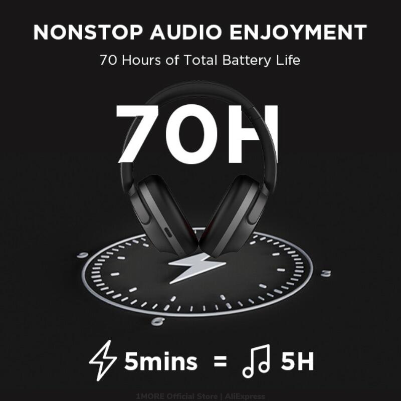 Original 1MORE Sonoflow Wireless Bluetooth Active Noise Canceling Headphones, Hi-Res LDAC 12 EQ, 70H Battery, Connect 2 Devices, 5 Mic