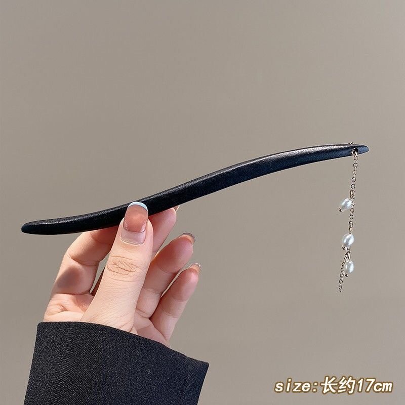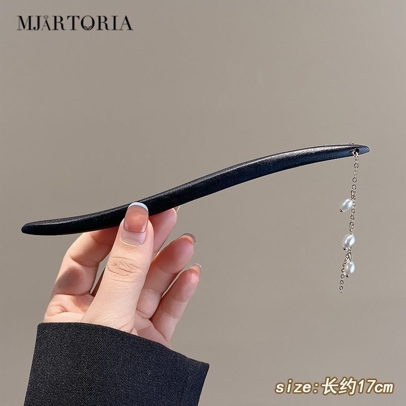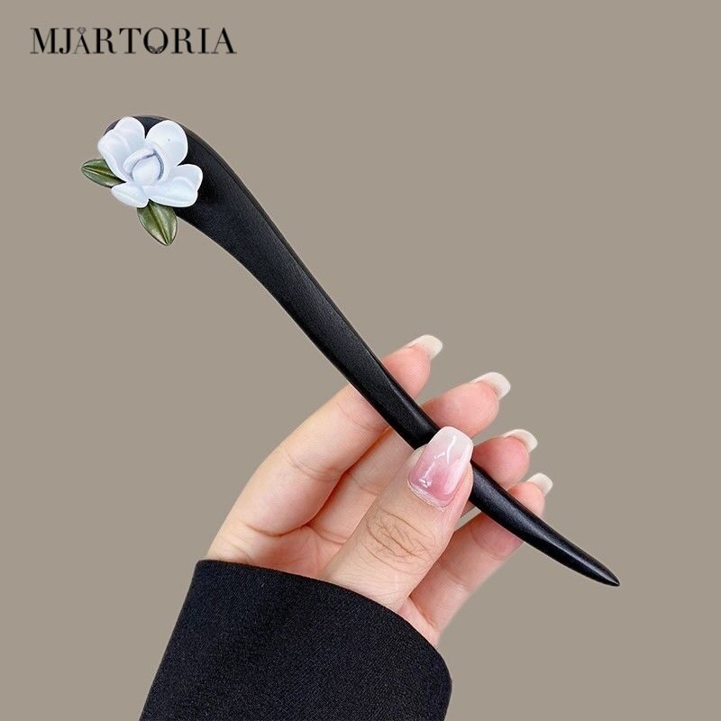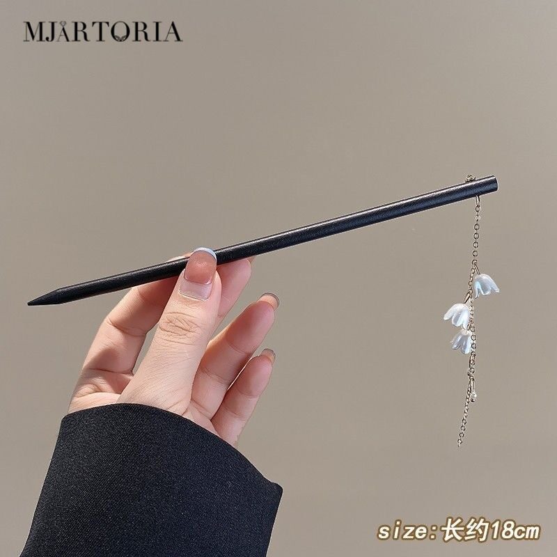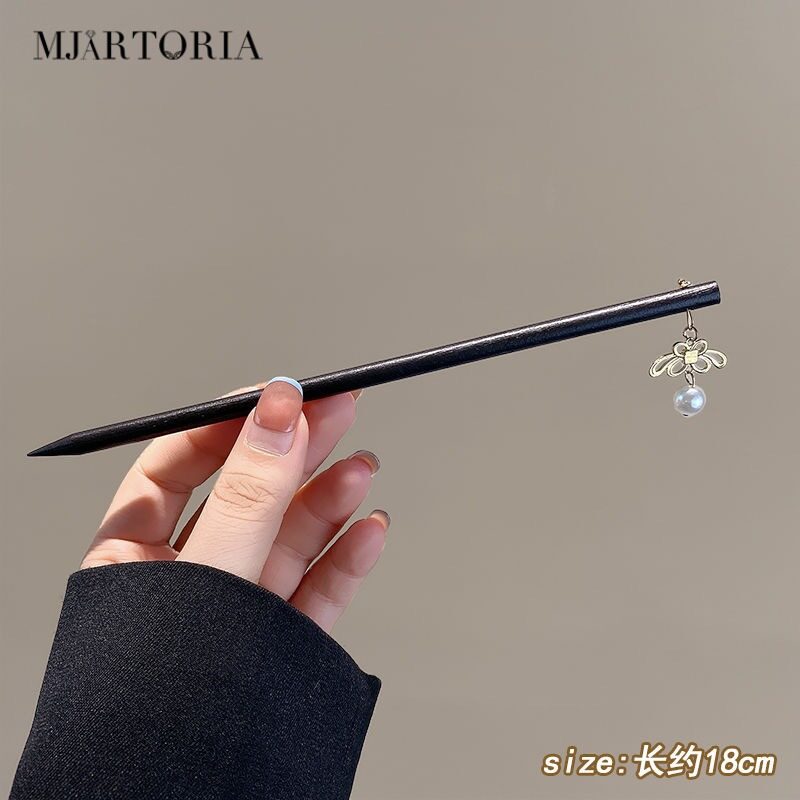MJartoria Chinese Flower Hair Forks Long Tassels Chopsticks Hairpins Clips Hair Stick Wooden Imitation Pearls Bead Step Shake Wedding Gift