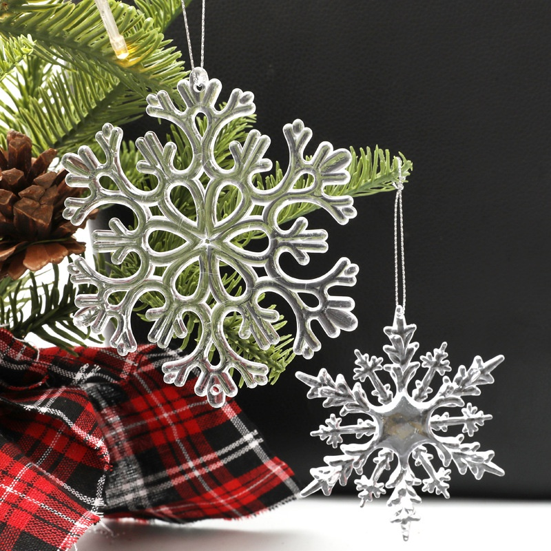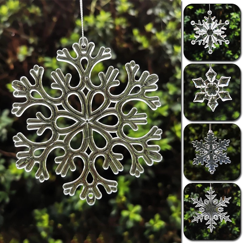 10pcs Christmas Transparent Acrylic Crystal Snowflake Christmas Tree Pendant Decoration New Year Decor Ornament