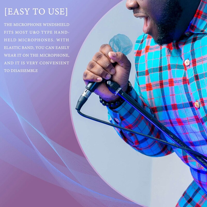 [Easy to use] The microphone windshield fits most U&O type handheld microphones. With elastic band, you can easily wear it on the microphone, and it is very convenient to disassemble