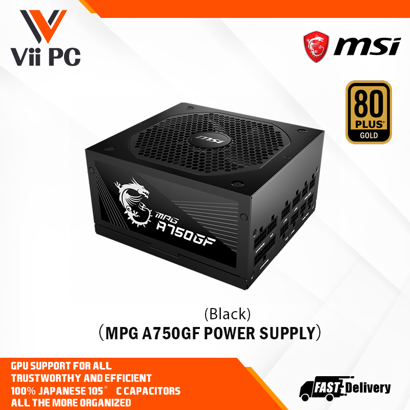 MSI MPG A750GF 750W/80Plus Gold/Full Modular/Flat Cables/100% Jap Capacitors/10yrs Warranty PSU-Black and White