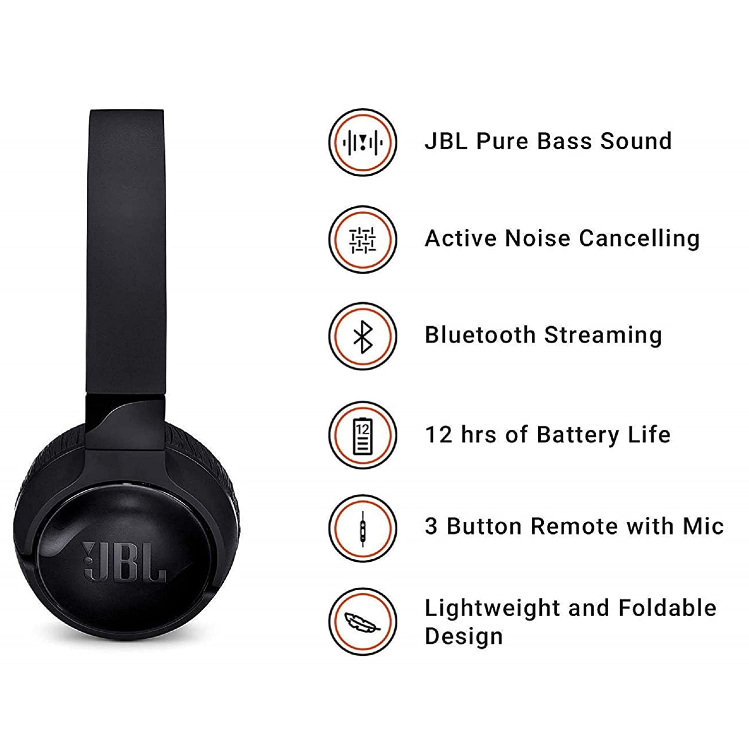 JBL T600BTNC Noise Cancelling, On-Ear, Wireless Bluetooth Headphone, Black, One Size