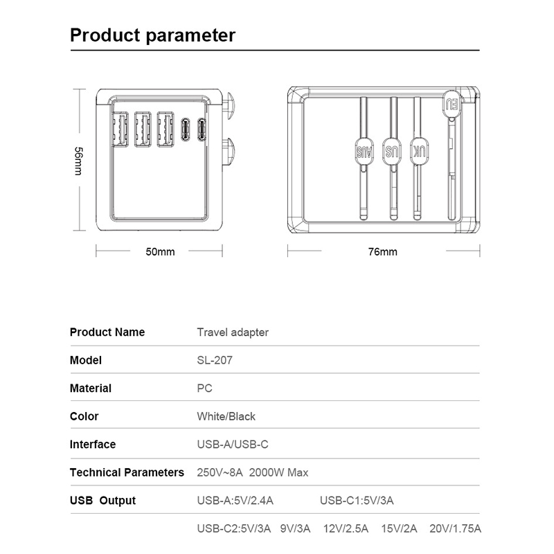 Universal Travel Adapter All in One International Worldwide Wall Power Travel Adaptor with 4 USB Ports + 1 Type C Port Fast Wall Charger Plug