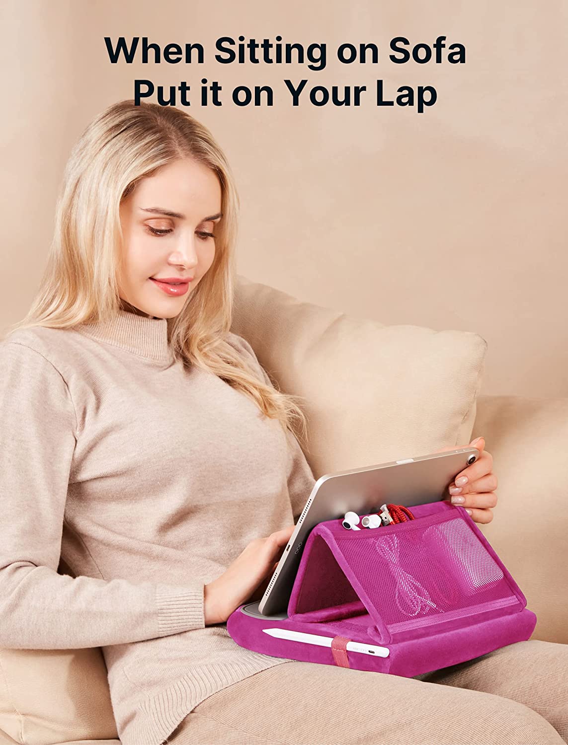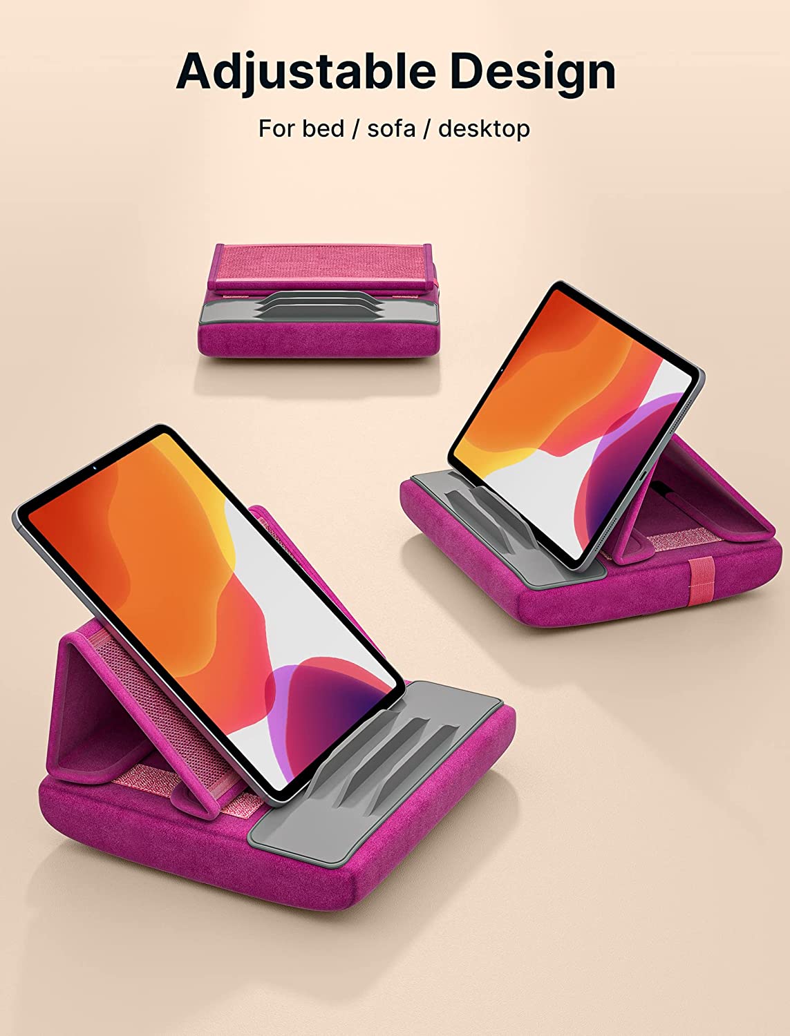 JSAUX tablet pillow stand is perfect for reading, watching videos & photos or typing while lying in bed, or sitting on sofa or rug. It holds your device well and has multi angle adjustments for greater comfort.