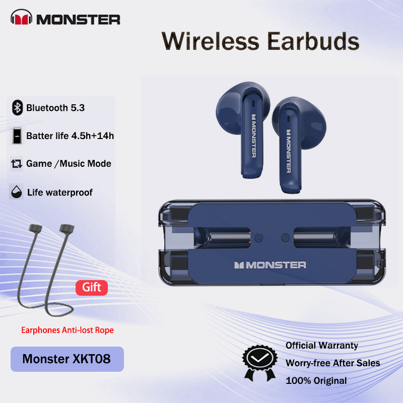 Monster Wireless Earbuds XKT08 Bluetooth Headphones with Lanyard HIFI Sound Game Headset Noise Canceling Built-in Microphone for Xiaomi Oppo Vivo Samsung Huawei Realme