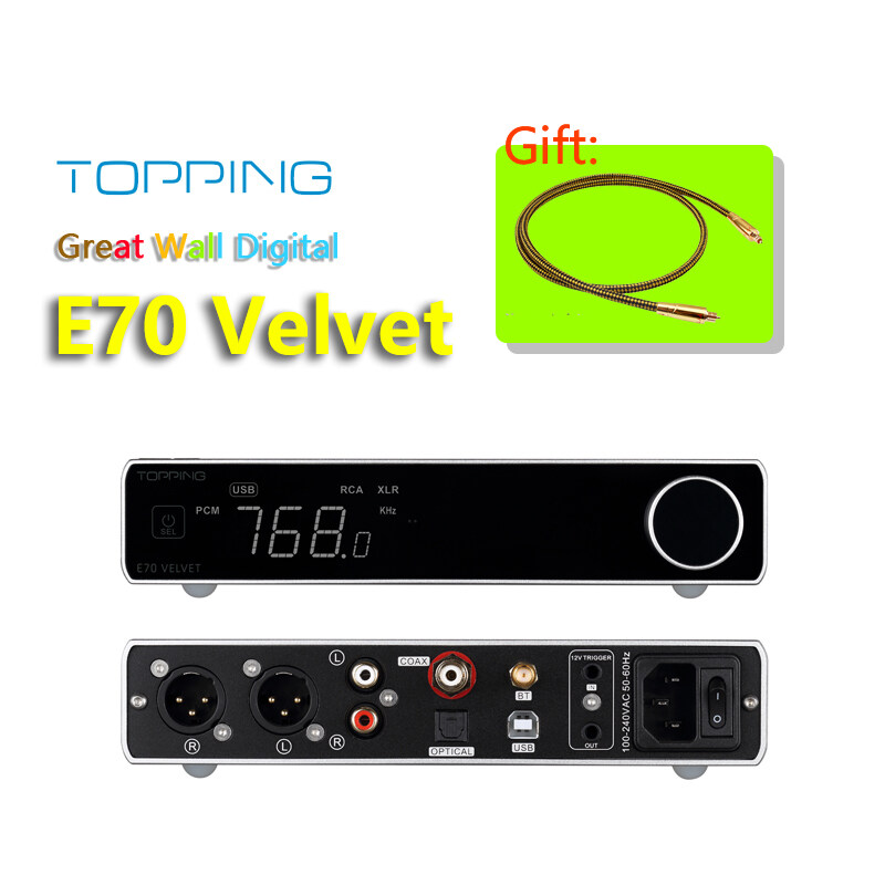 TOPPING E70 VELVET AK4499EX Decoder XU316 DSD512 PCM768kHz Bluetooth 5.1 LDAC 24Bit/96kHz with Remote Control DAC。