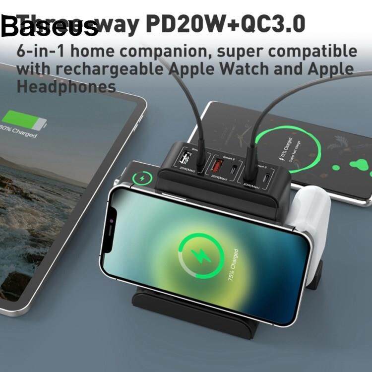 Baseus F8 6 in 1 80W Type-C / USB-C Multi-Port Charging Stand Multi-function Wireless Charger for iPhone iWatch AirPods