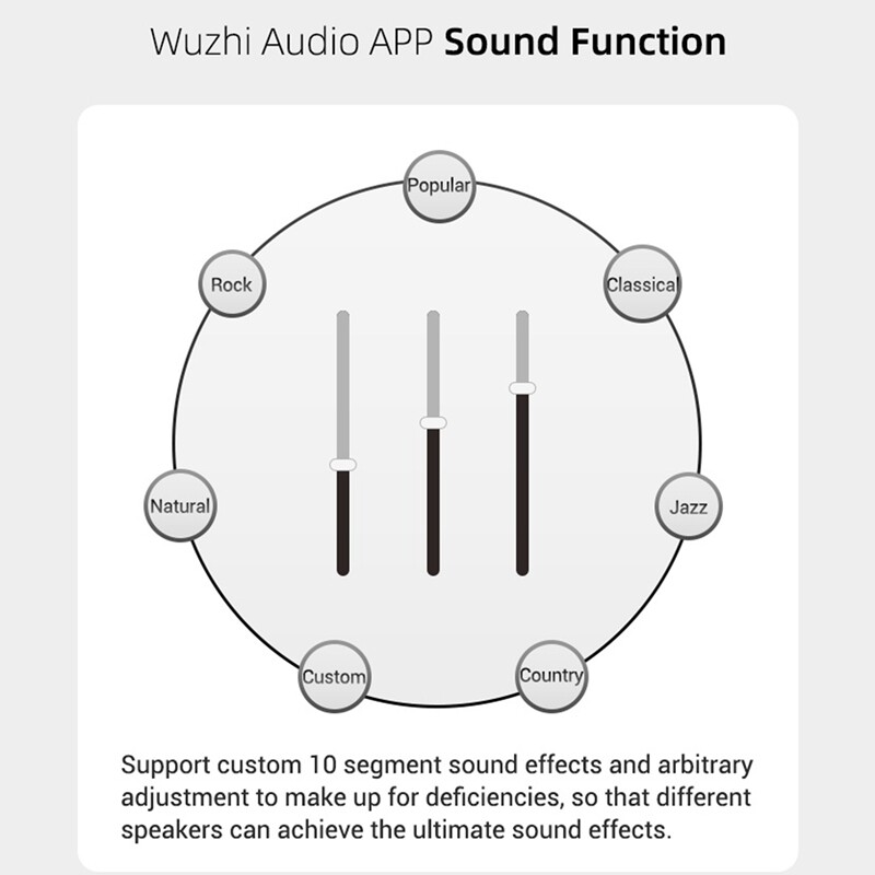3. The mid-range adjustment of the stereo part has been added, and combined with the subwoofer + treble to form a full coverage of the low, medium and high sound effects, compared to the TB21, the increased translucent vocals are prominent.