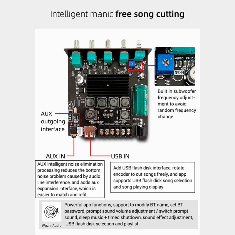 6. The frequency adjustment of the subwoofer is changed to the internal debugging of the board. After debugging, the customer will not change it at will.