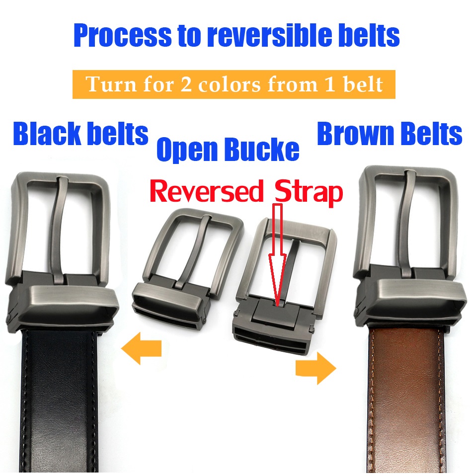 COWATHER Reversible Leather Casual Belt for Men with Genuine Cow Leather 3.3CM Wide Classic Dress Everyday Prong Belts with Metal Prong Buckle