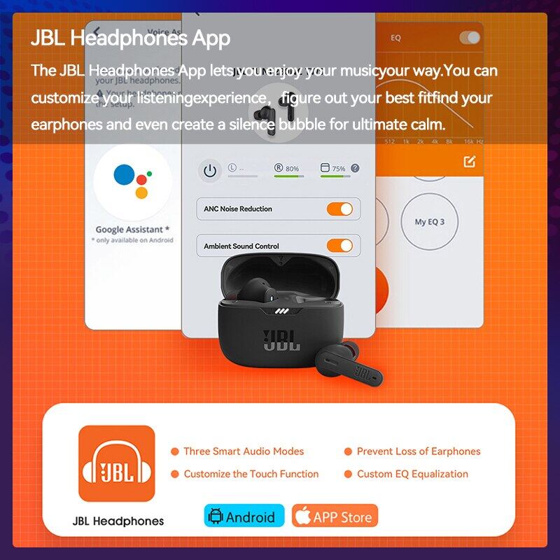 The JBL Headphones App lets you enjoy your musicyour way.You can customize your listeningexperience,figure out your best fitfind your earphones and even create a silence bubble for ultimate calm.