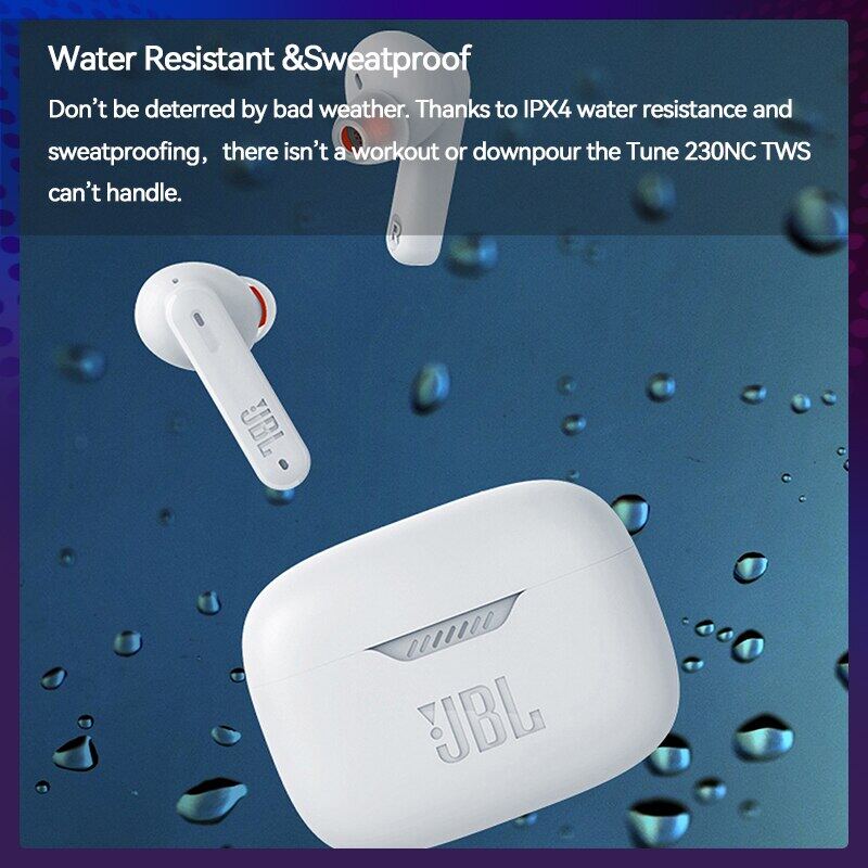 Don’t be deterred by bad weather. Thanks to IPX4 water resistance and sweatproofing,there isn’t a workout or downpour the Tune 230NC TWS can’t handle.