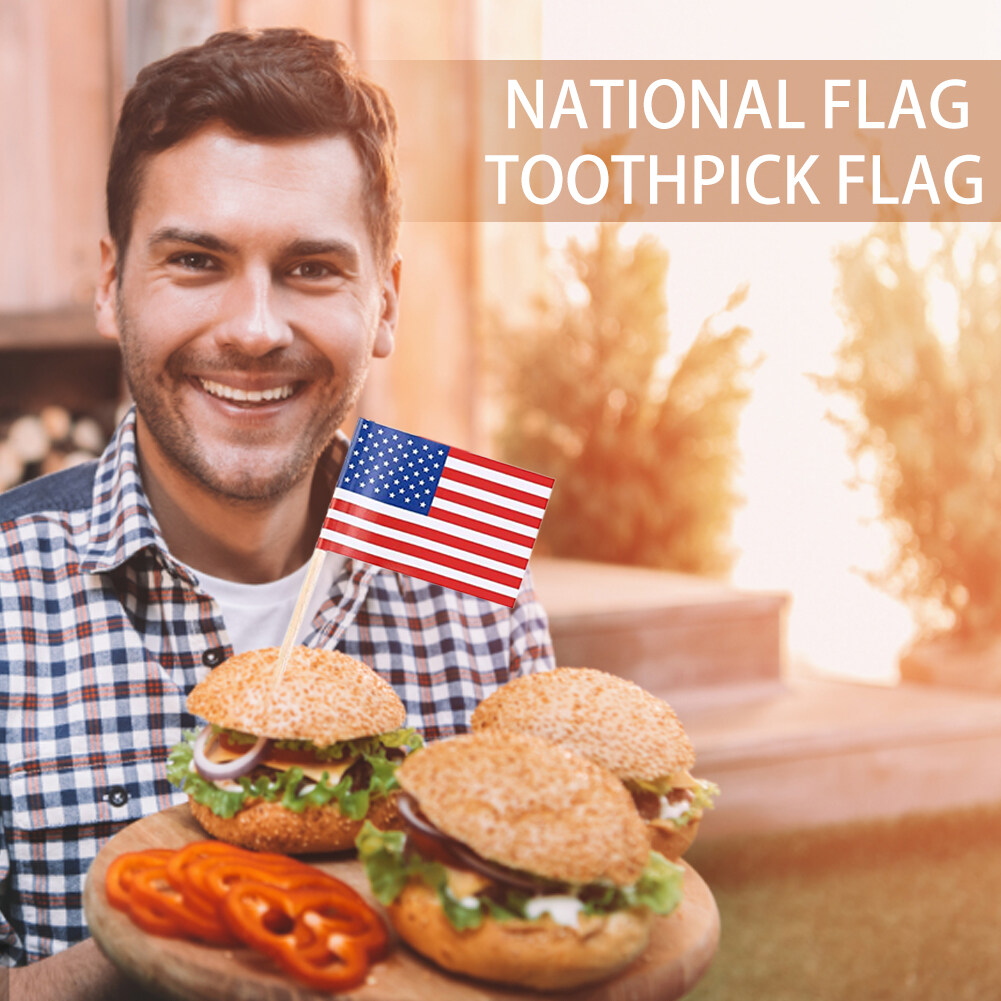 Wooden Food Insert Toothpicks Disposable Paper National Flag Sandwich Toothpicks Celebration Props 100pcs for Birthday Bar Party Features: 1. Attractive and Decorative: Flag toothpicks are the perfect decoration for your cupcakes, desserts, fruits, appetizers, make them more attractive and add ambience. 2. Wide range of uses: Flagpoles are widely used in birthday party game events, sports events, national days or bars. Or kids can use them to DIY and enjoy. 3. Eco-friendly: Flag cupcake toppers are made of wooden toothpicks with durable colored paper flags on top. 4. Good Decoration: Great for decorating sandwiches, burgers, cupcakes, fruit, cocktails and other party food. 5. Applicable occasions: weddings, birthday parties, dinner parties, parties, cocktail parties and other themed parties.