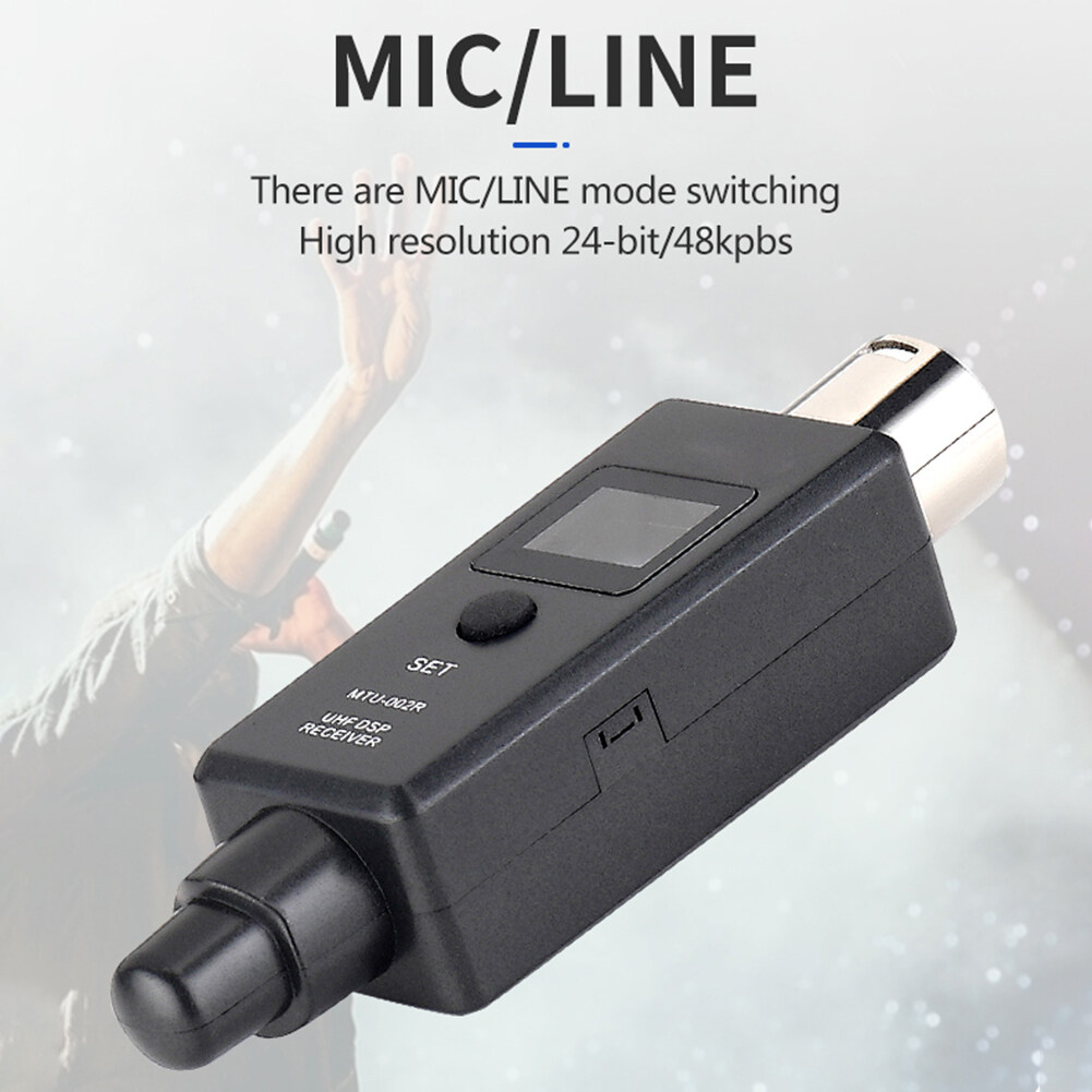 1 Pair Micphone Wireless System Rechargeable UHF DSP Transmitter Receiver for Dynamic Mic Mic/Line Two Modes Guitar Wireless Audio Transmission System