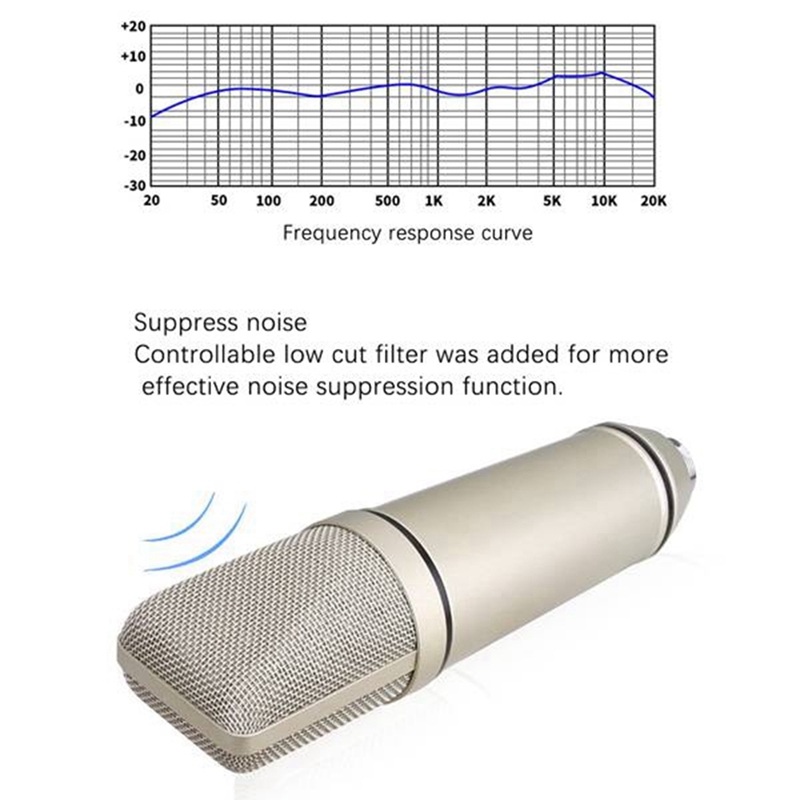 5.Professional studio level condenser microphone provides wider frequency response, outputs stable audio and beautifies human voice