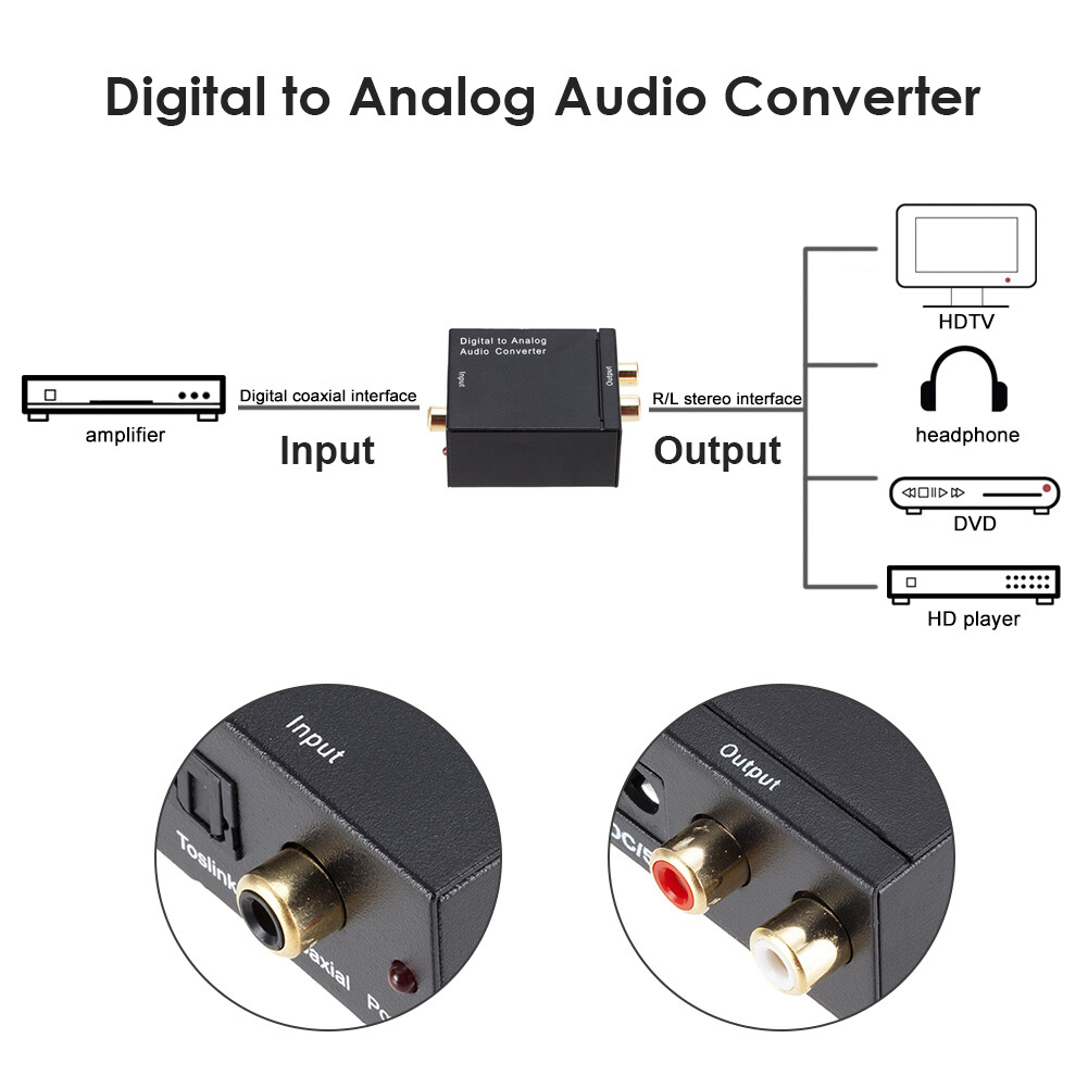 Digital to Analog Audio Converter Optical Fiber Toslink Coaxial Signal to Amplifier RCA R/L Decoder Adapter