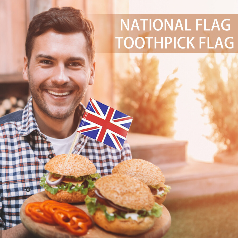 Wooden Food Insert Toothpicks Disposable Paper National Flag Sandwich Toothpicks Celebration Props 100pcs for Birthday Bar Party Features: 1. Attractive and Decorative: Flag toothpicks are the perfect decoration for your cupcakes, desserts, fruits, appetizers, make them more attractive and add ambience. 2. Wide range of uses: Flagpoles are widely used in birthday party game events, sports events, national days or bars. Or kids can use them to DIY and enjoy. 3. Eco-friendly: Flag cupcake toppers are made of wooden toothpicks with durable colored paper flags on top. 4. Good Decoration: Great for decorating sandwiches, burgers, cupcakes, fruit, cocktails and other party food. 5. Applicable occasions: weddings, birthday parties, dinner parties, parties, cocktail parties and other themed parties.