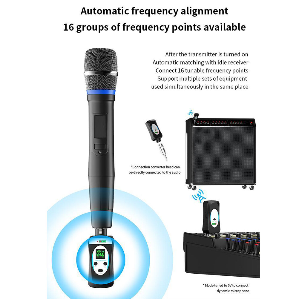 Feature: 1. Advantages and Scenarios: The microphone wireless transceiver solves the wireless audio signal transmission between the microphone and the audio, the mixer, and the sound card, realizing the expansion effect of wireless audio transmission, and solving the traditional wiring mode. This product is suitable for stage performances, outdoor entertainment, speeches, outdoor performances, and other places