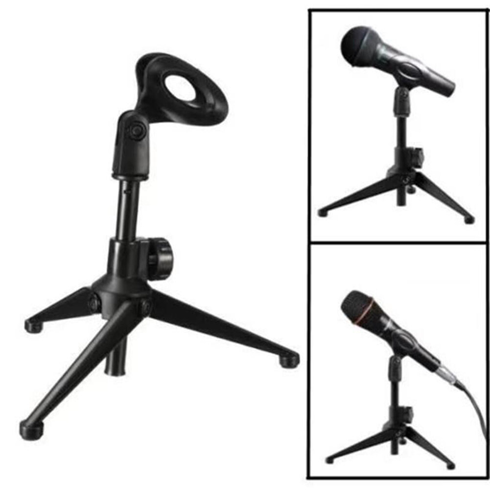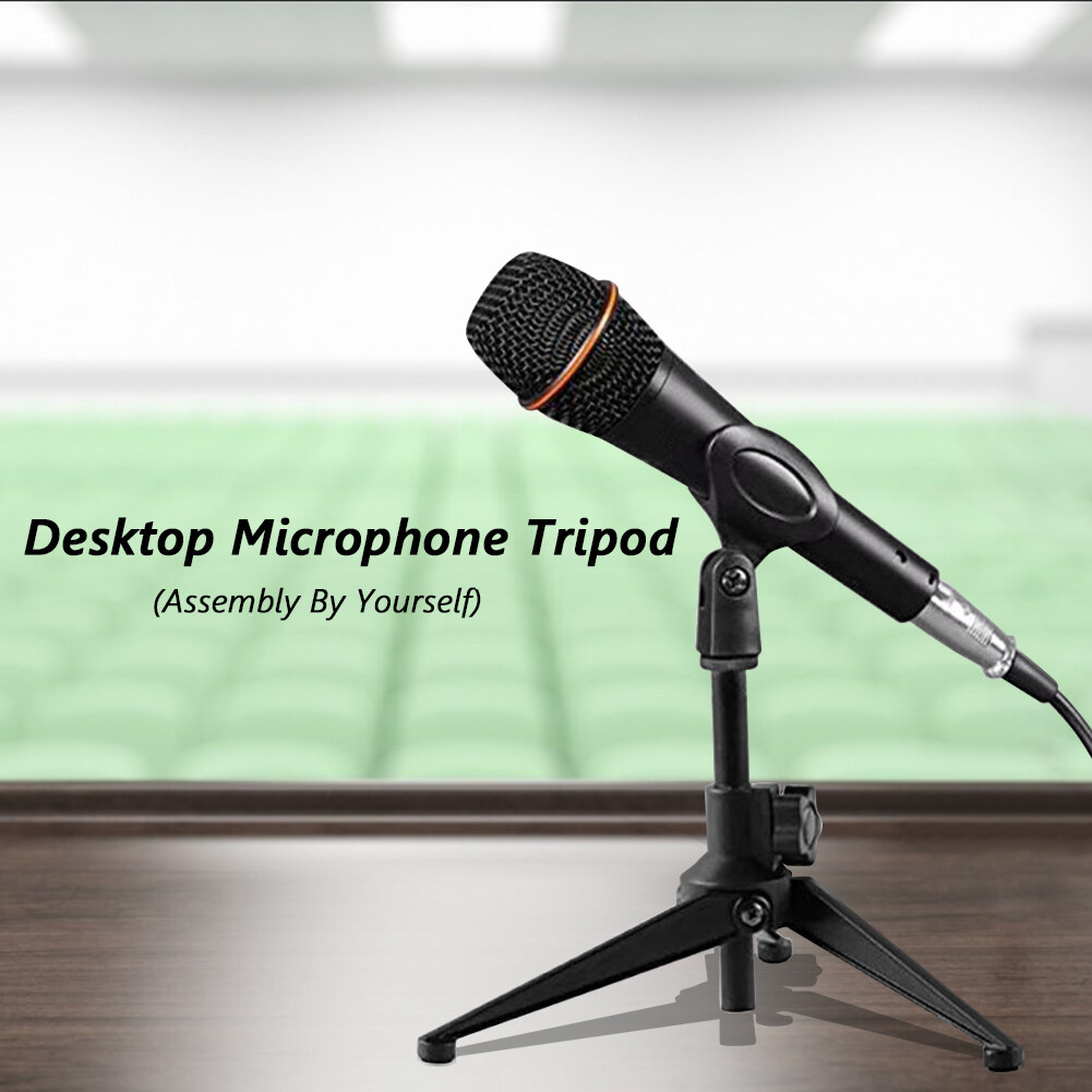 Foldable Desktop Microphone Tripod Stand Height Adjustable Karaoke Holder with Mic Clip for Meetings Lectures Live
