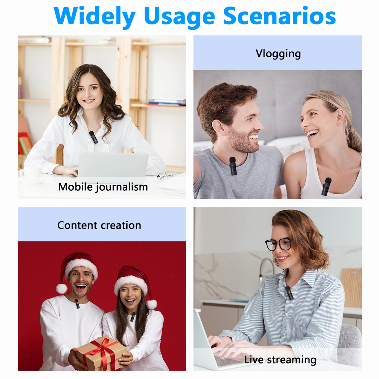 Wireless Microphone System】This wireless microphone system adopts 2.4G wireless transmission technology, supports auto pairing, plug-and-play, no APP needed, very suitable for phone vlog, live streaming, interview, online chatting, etc.