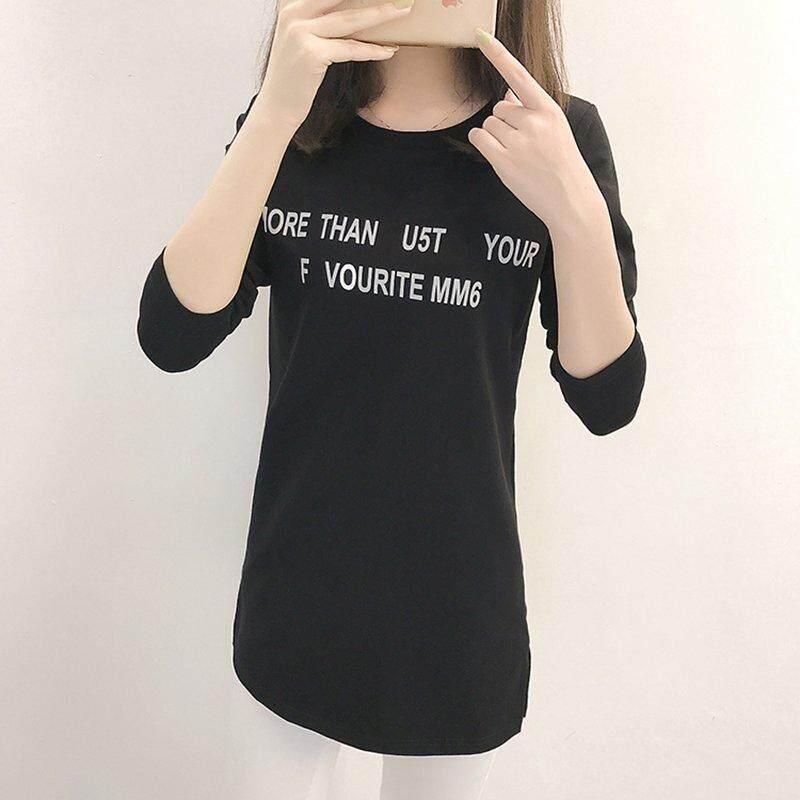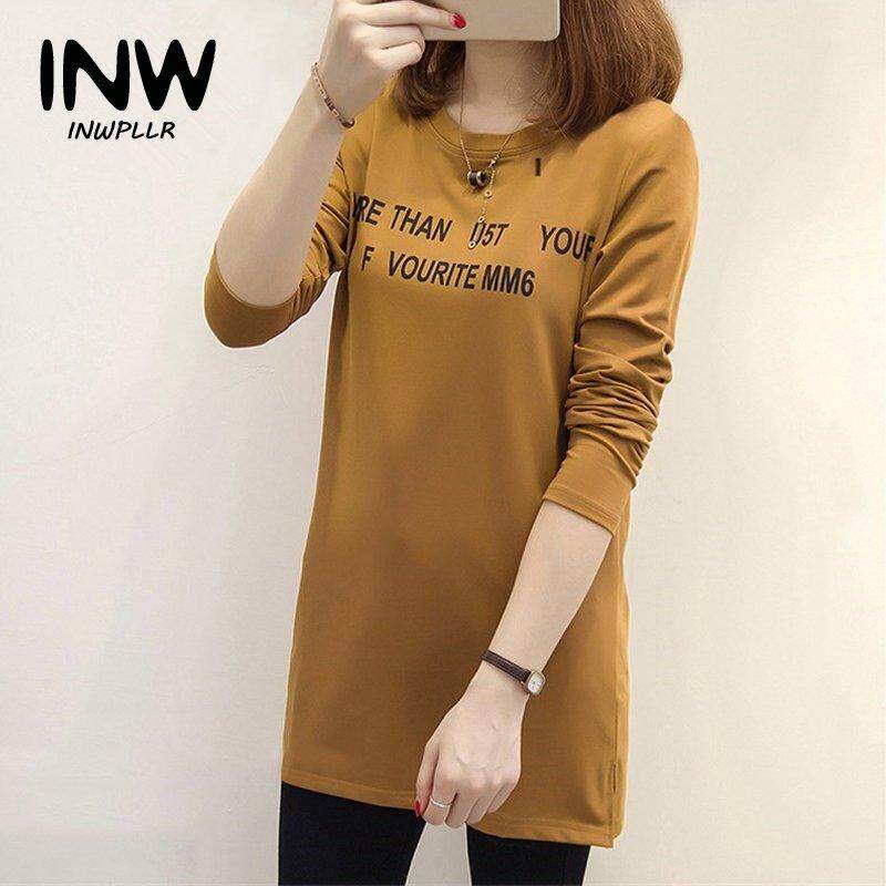 INWPLLR Fashion Women T-shirts Letter Print T-shirt Women O-neck Long Sleeve Tee Shirt Ladies Casual Long Tshirts Women Tops