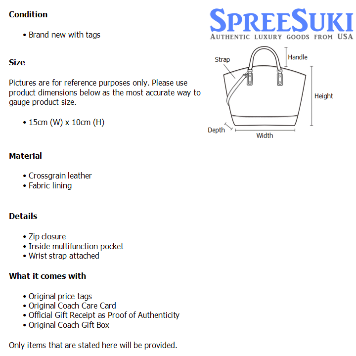 All our products are 100% authentic and purchased from Coach stores in USA. We are a reputable registered business in Singapore and it is illegal to sell counterfeit goods in Singapore. This product also comes with a gift receipt which is printed by the Coach store that we purchased the item from. It states the item that we purchased and the Coach store that it was purchased from, proving the authenticity of the item. Buy with confidence.